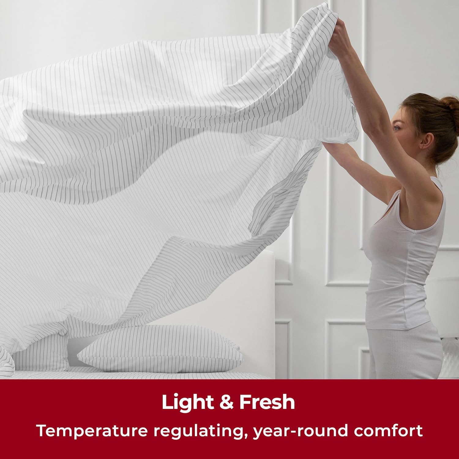 - Lightweight Luxury for Year-Round Comfort - Designed to be airy and ultra-light, our sheets offer effortless comfort in every season. Their thin, breathable construction enhances airflow, wicks moisture, and dries quickly. Despite their lightweight feel, these sheets are exceptionally strong and more durable than cotton, resisting stains, tears, and wear from frequent washing. Perfect for busy households with kids or pets.