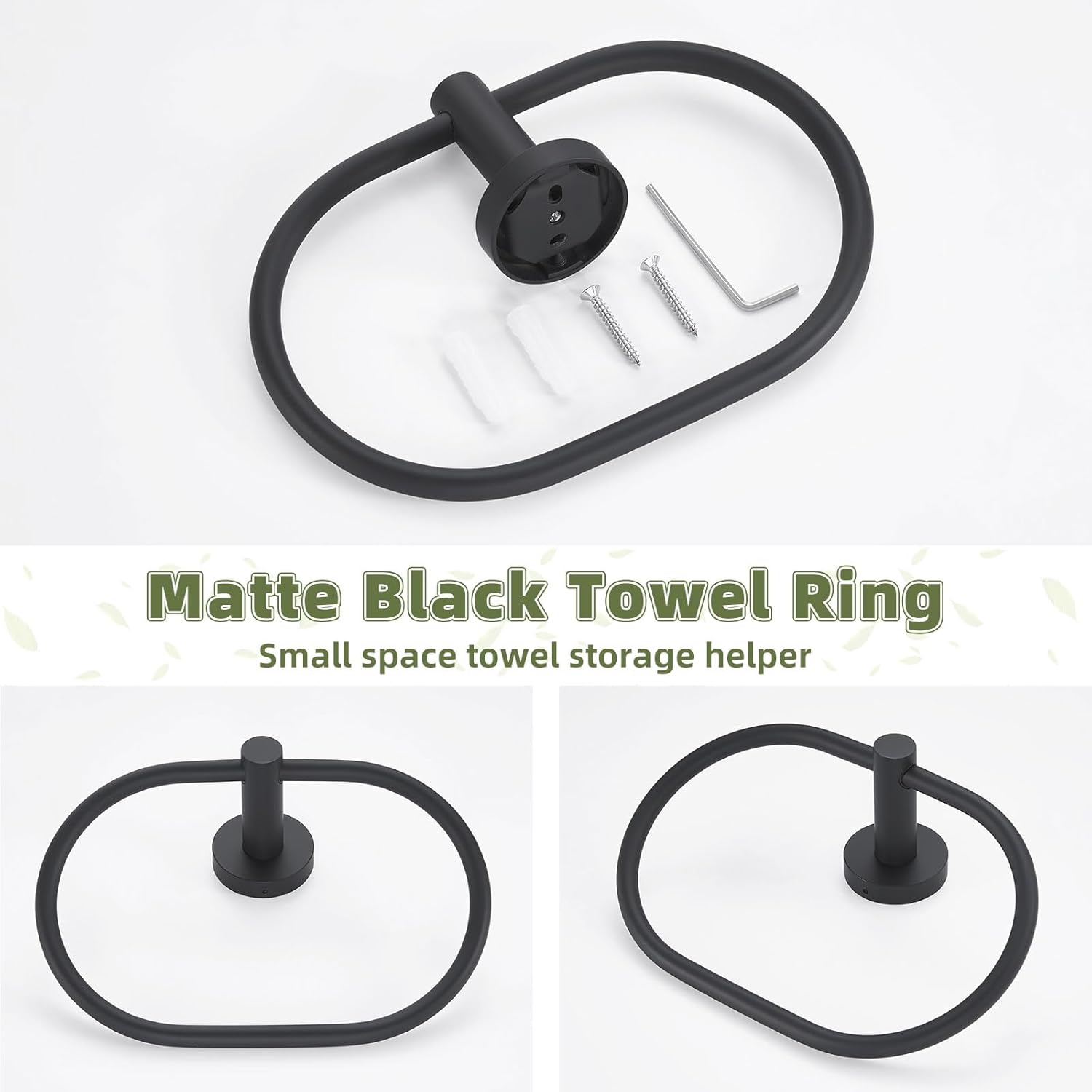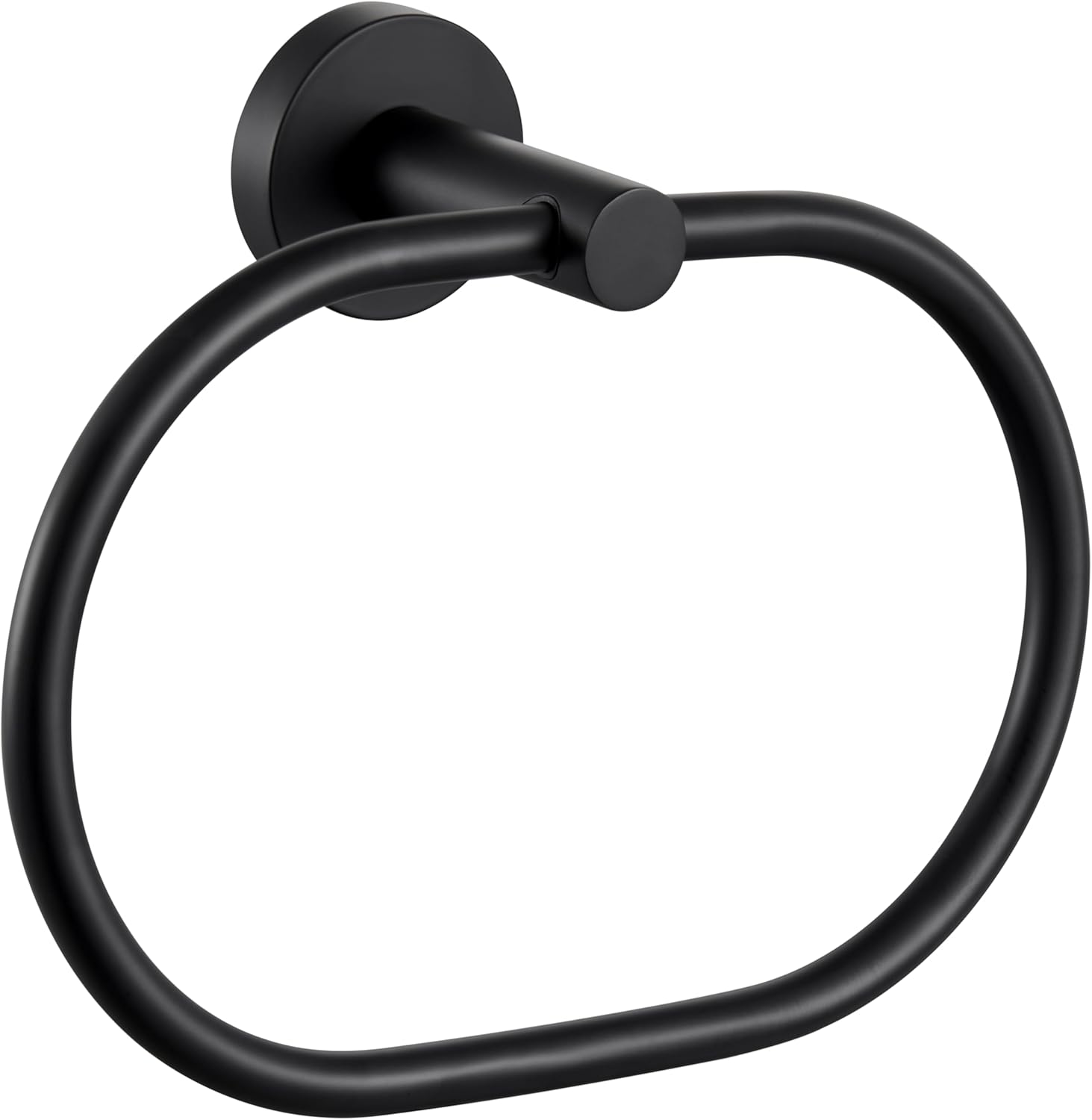 APLusee Matte Black Towel Ring, Stainless Steel Oval Hand Towel Holder for Bathroom Kitchen, Wall Mounted