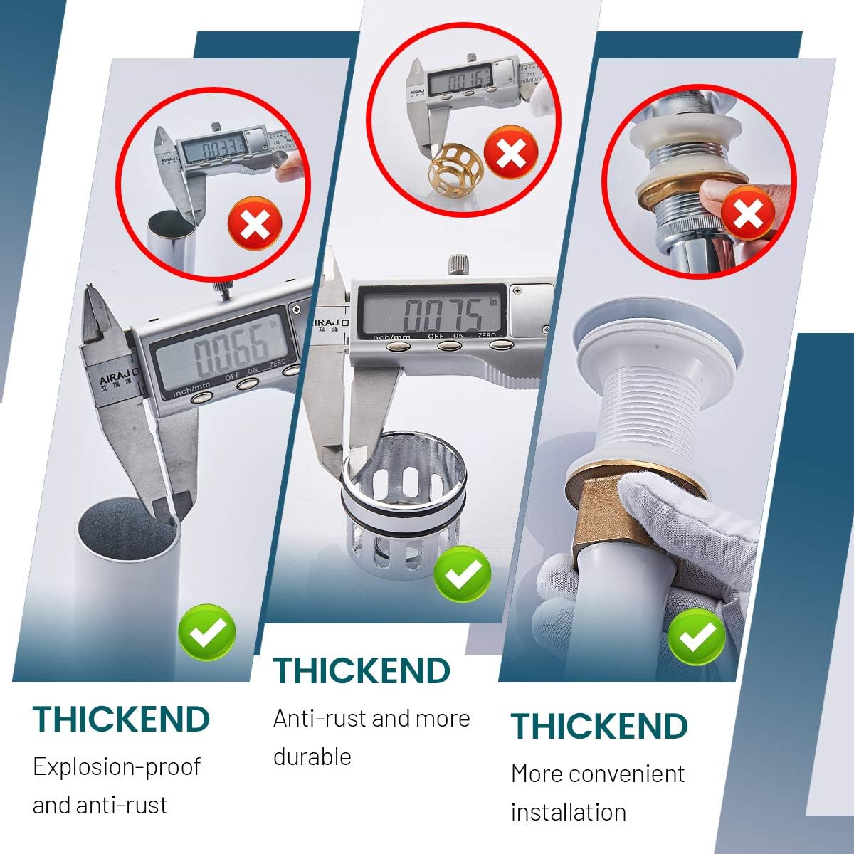 - 【No WATER LEAKAGE】Thickened stepped silica-gel gasket, don't need any plumber's putty,Oxidation resistance and leakage proofing.