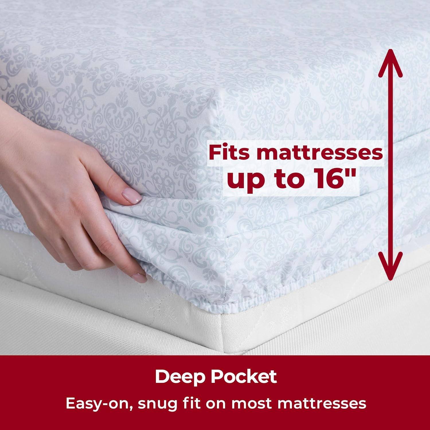 - Perfect Fit & Certified Safe - Deep pockets fit mattresses up to 16" deep, making them ideal for memory foam toppers, air mattresses, and more. A sewn-in elastic band ensures a snug, secure fit. OEKO-TEX(R) STANDARD 100 certified (22.HUS.40891, Hohenstein), tested for over 1,000 harmful substances for your peace of mind.