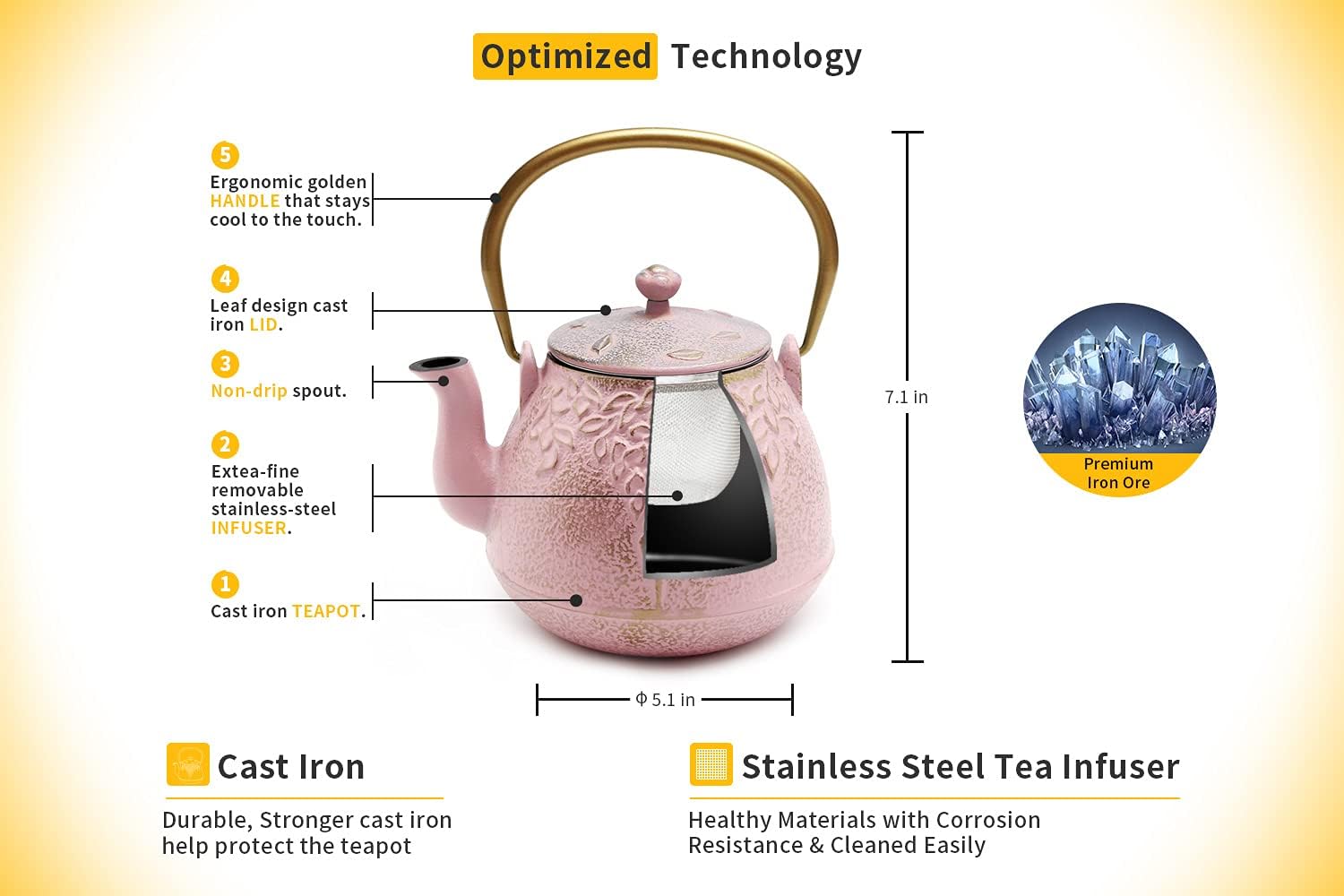 - π Better Gift - The pink cast iron teapot is crafted with a retro blush pink leaf pattern on its surface, which is a symbol of natural simplicity and purity. Beautiful packaging has also been designed. An exquisite gift for Dad, Mom, Friends, Family, Wedding, DΓ©cor, Decorations, Party and Tea Lovers.