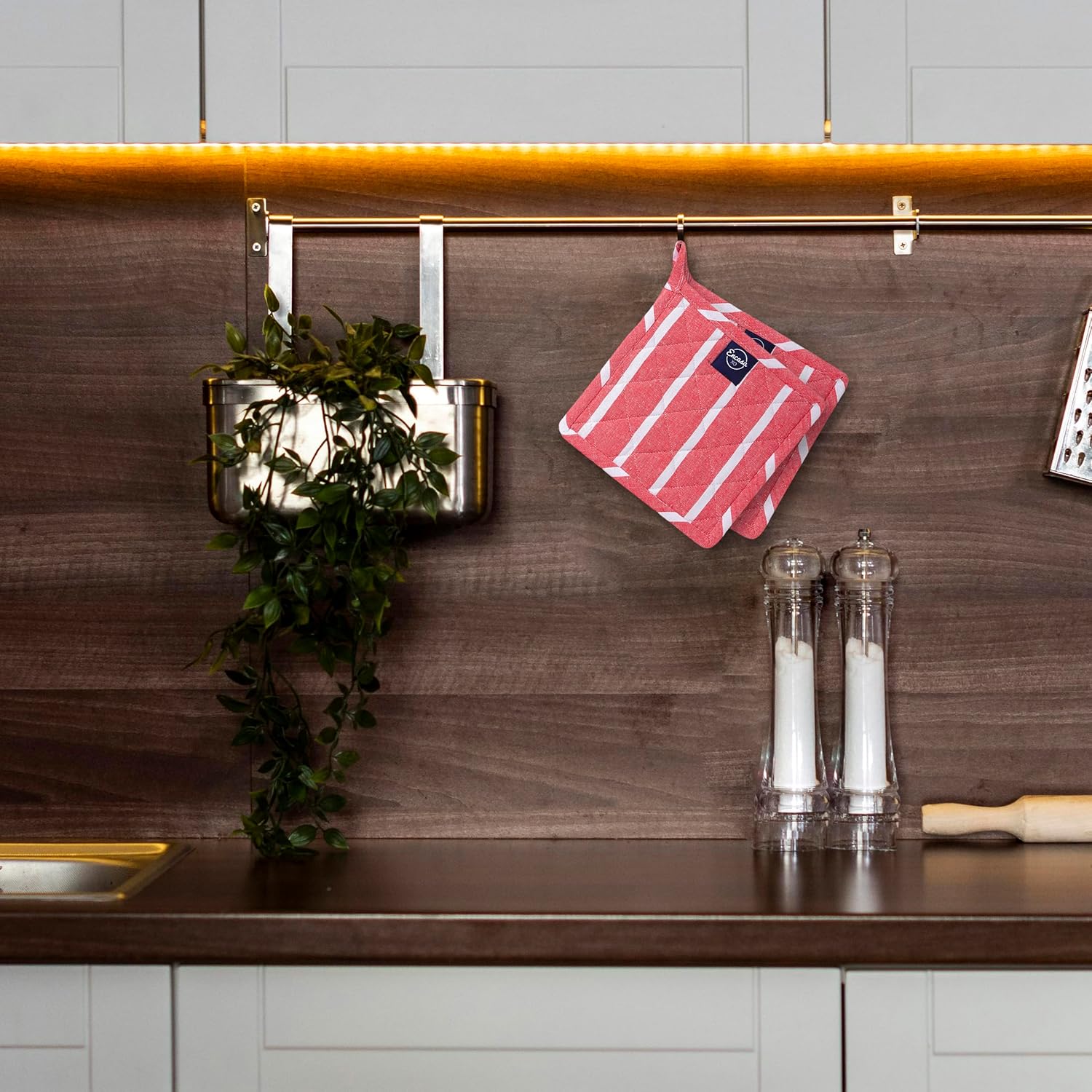 - COORDINATE: Matching Aprons, Oven Mitts & Dish Towels can be bought along with these Pot Holders to make it a Decor item for your Kitchen & Dining Table.