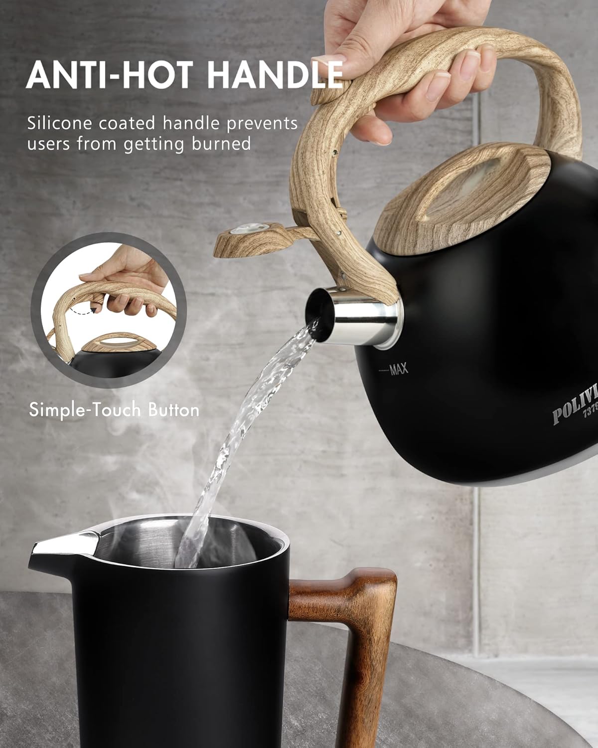 POLIVIAR Tea Kettle, Black Ti Stovetop Tea Kettle 2.7 Quart , Audible Whistling Teapot, Food Grade Stainless Steel for Anti-Rust and Anti Hot Handle, Suitable for All Heat Sources (JX2018-WB20)