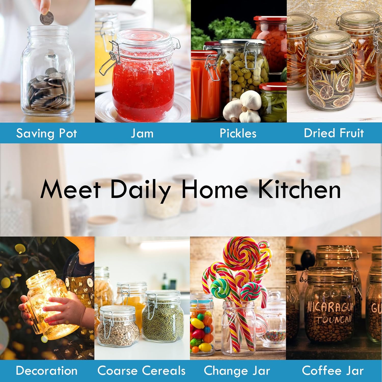 - MULTIPLE USAGES: Great for storing your favorite food items including pasta, sugar, coffee, cereal, soup, juice, grains or fruit. Also food storage containers are perfect for bathroom, garage, office, or playroom organisation.Glass canister set can prevent your liquid or solid food items from getting soggy or absorbing odors.