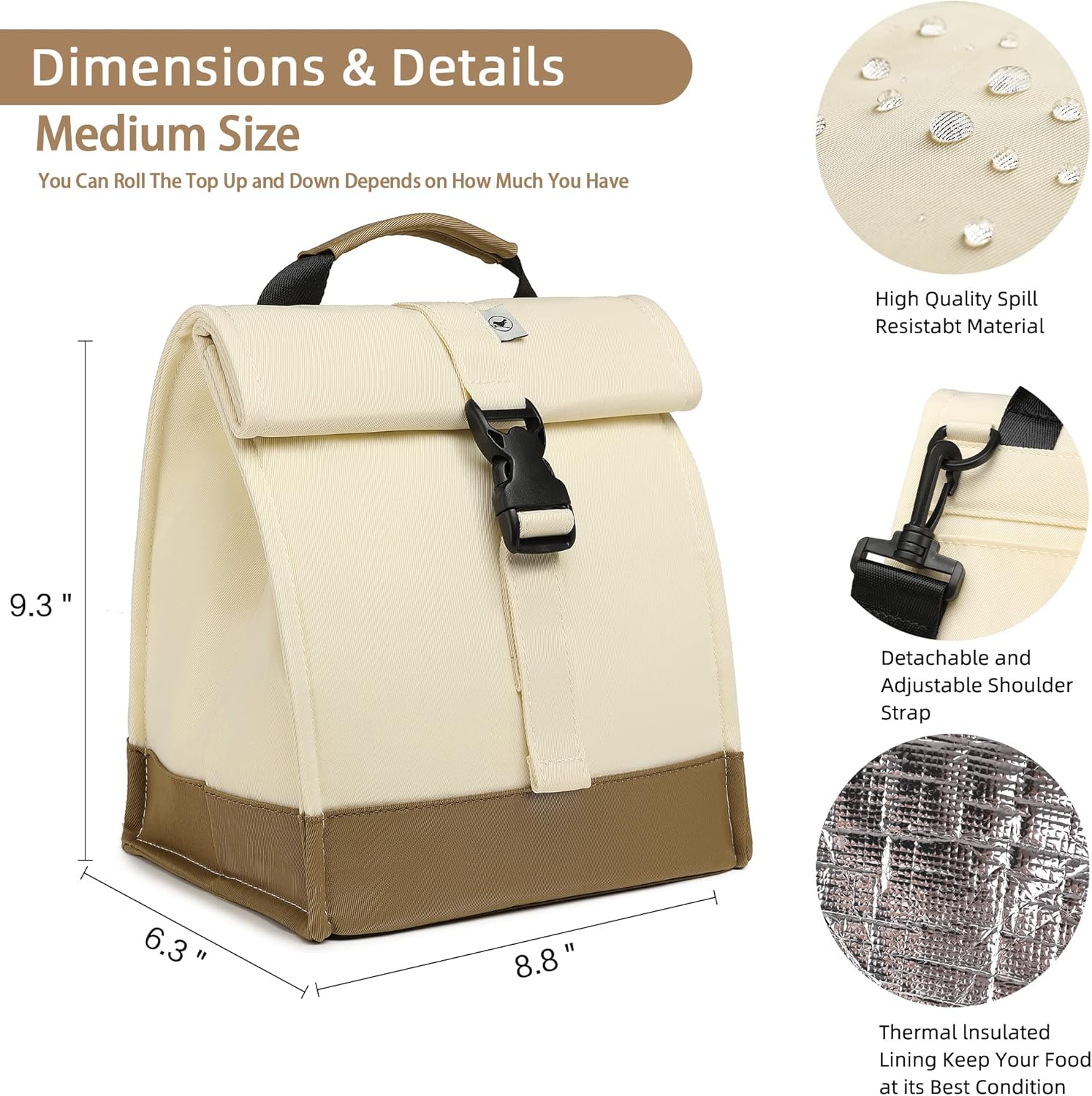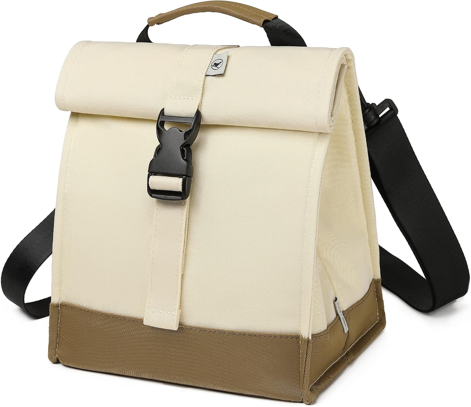 SUNNY BIRD Insulated Lunch Bag Rolltop Lunch Box Medium Lunch Cooler Tote for Women, Girls, Teens and Adults (White)
