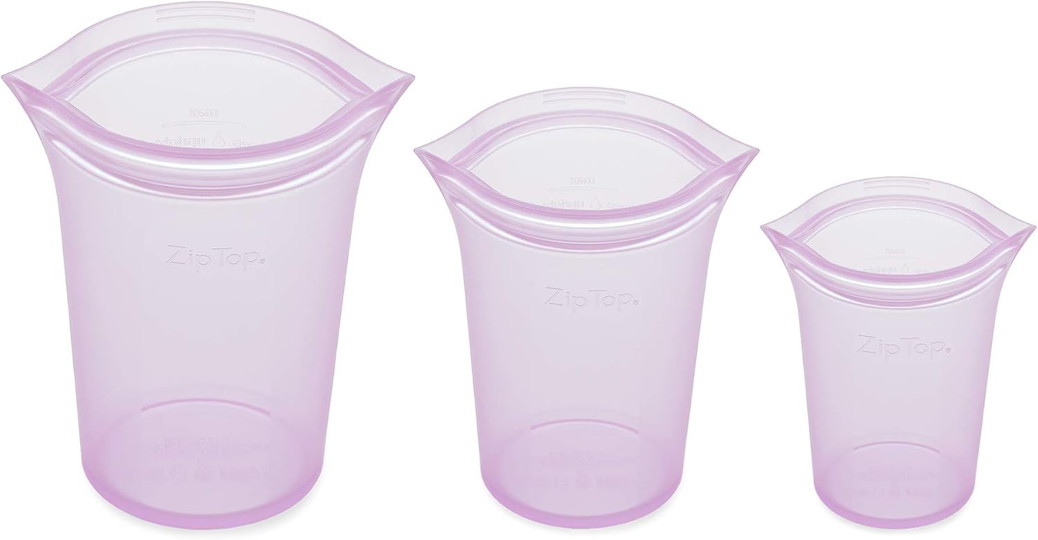 Zip Top Reusable Food Storage Bags | 3 Cup Set [Lavender] | Silicone Meal Prep Container | Microwave, Dishwasher and Freezer Safe | Made in the USA