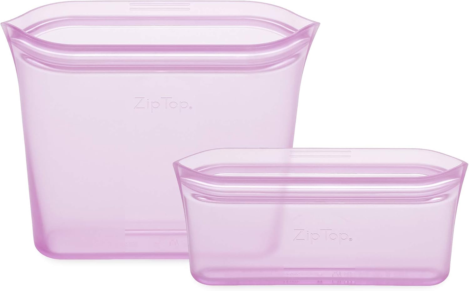 - Designed for easy use and cleaning: Single-piece construction with no glue or plastic sliders, Zip Top is the most durable and easy-to-use reusable container. The tops stay open and zippers do not overlap in the corners like normal zippers making it super easy to clean. Thick strong silicone will not tear or break keeping food fresh. No more lids!