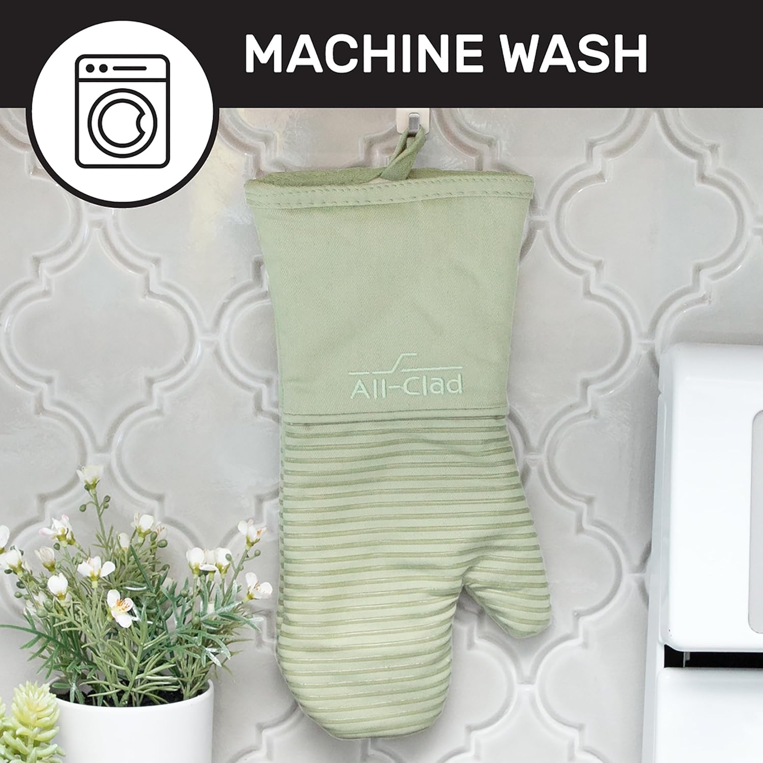 - MACHINE WASHABLE: All Clad's Silicone Oven Mitt Set is machine washable for hassle-free cleaning