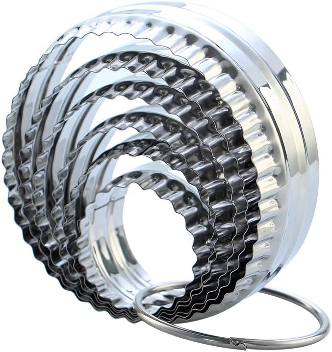 Fluted Cookie Cutters- Round Biscuit Cutters Set of 6 Pieces, Double Sided Fluted and Plain Edge Cookie Cutters, Stainless Steel