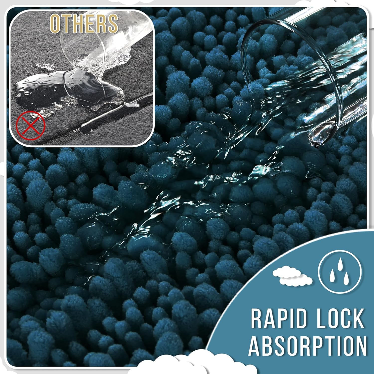 Yimobra Bathroom Rugs Non Slip Washable 24x17 Inch - Ultra Soft Absorbent Chenille Bath Mat, Quick Dry Shaggy Floor Carpet for Tub Shower, Peacock Blue Home Decor Accessories