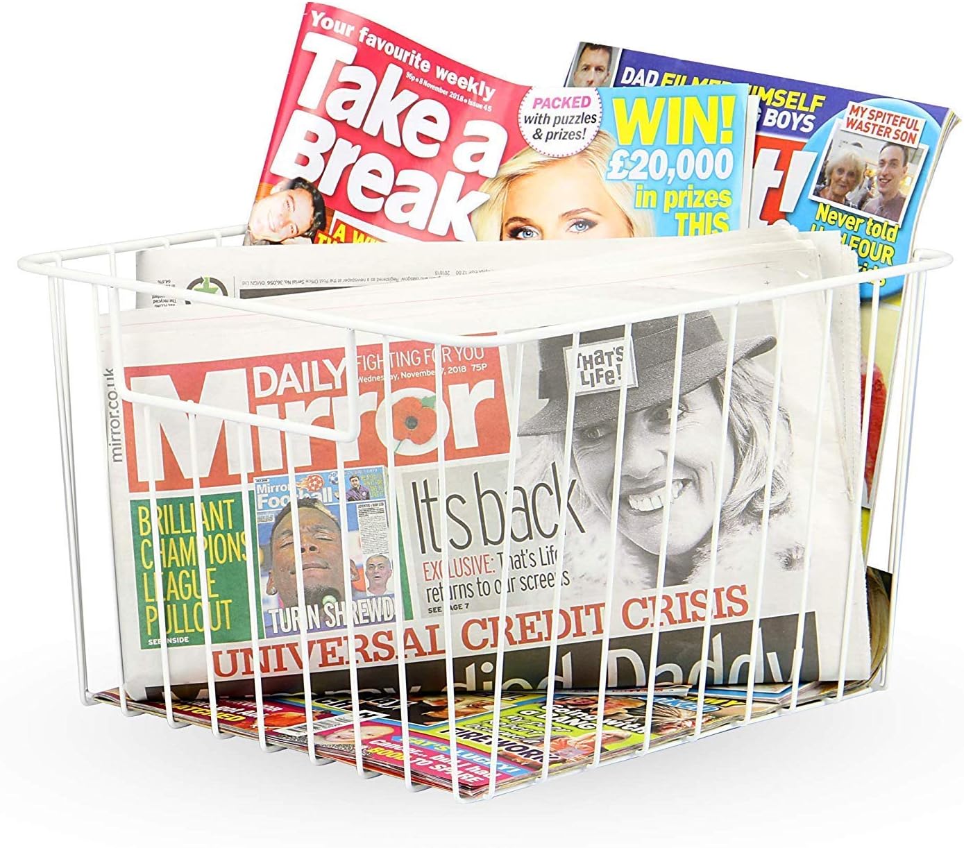 - IDEAL BASKET-Perfect for homes, apartments, condos, dorm rooms, RVs and campers, This bin keeps clean and save room under control by storing all of your essentials - foods, hats, scarves, video games, laundry needs, craft supplies and more.This metal wire basket is the perfect solution for organizing a multitude of items, Use in kitchen, refrigerator, bathroom, bedroom, closet, laundry room, utility room, garage, hobby and craft room, home office, mudroom and entryways.