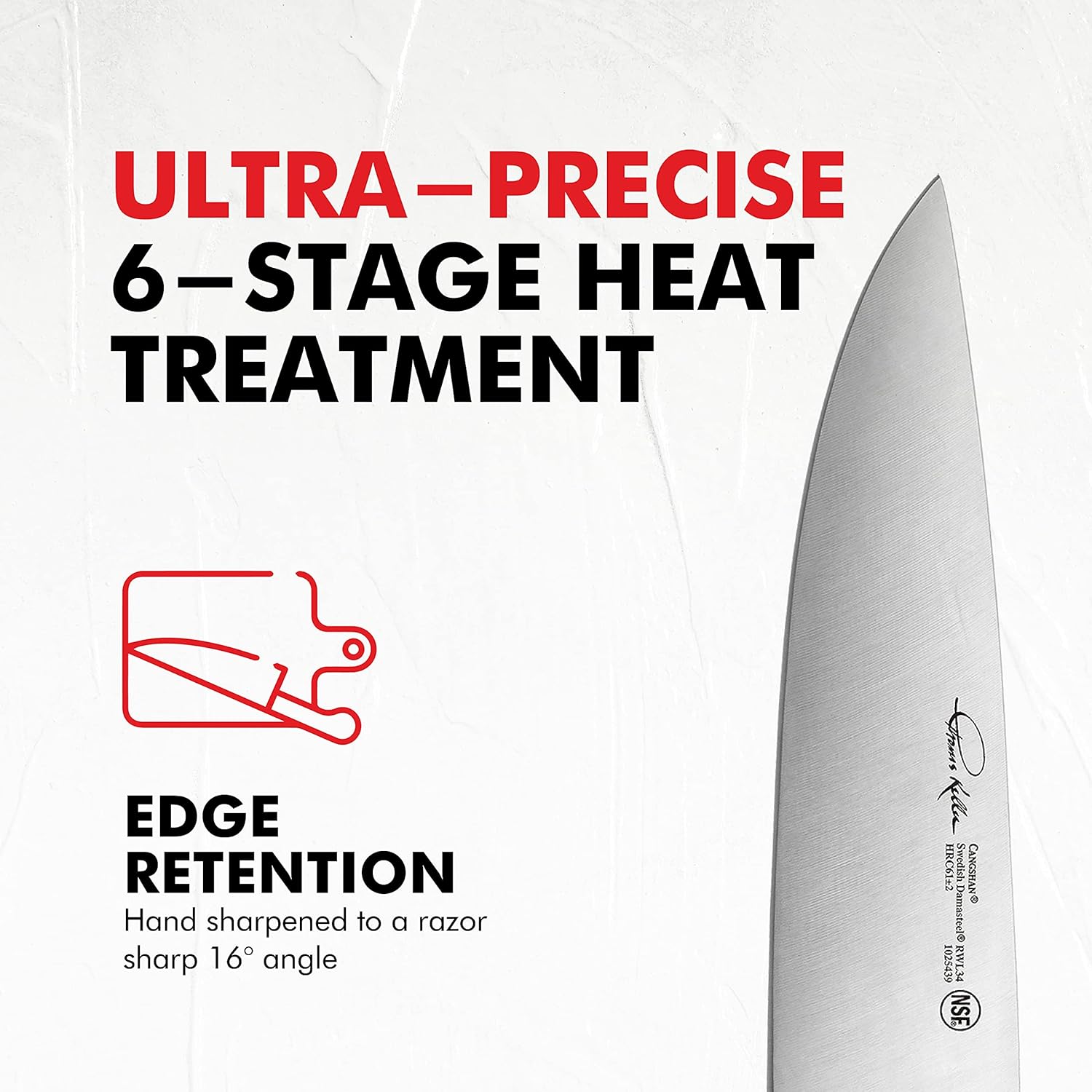 - Ultra-precise 6-stage heat treatment creates a Rockwell hardness rating of 61 +/-2, allowing the blade to take a remarkably sharp edge. Hand polished and hand sharpened by expert blade-smiths. 16-degree Asian-style cutting edge.