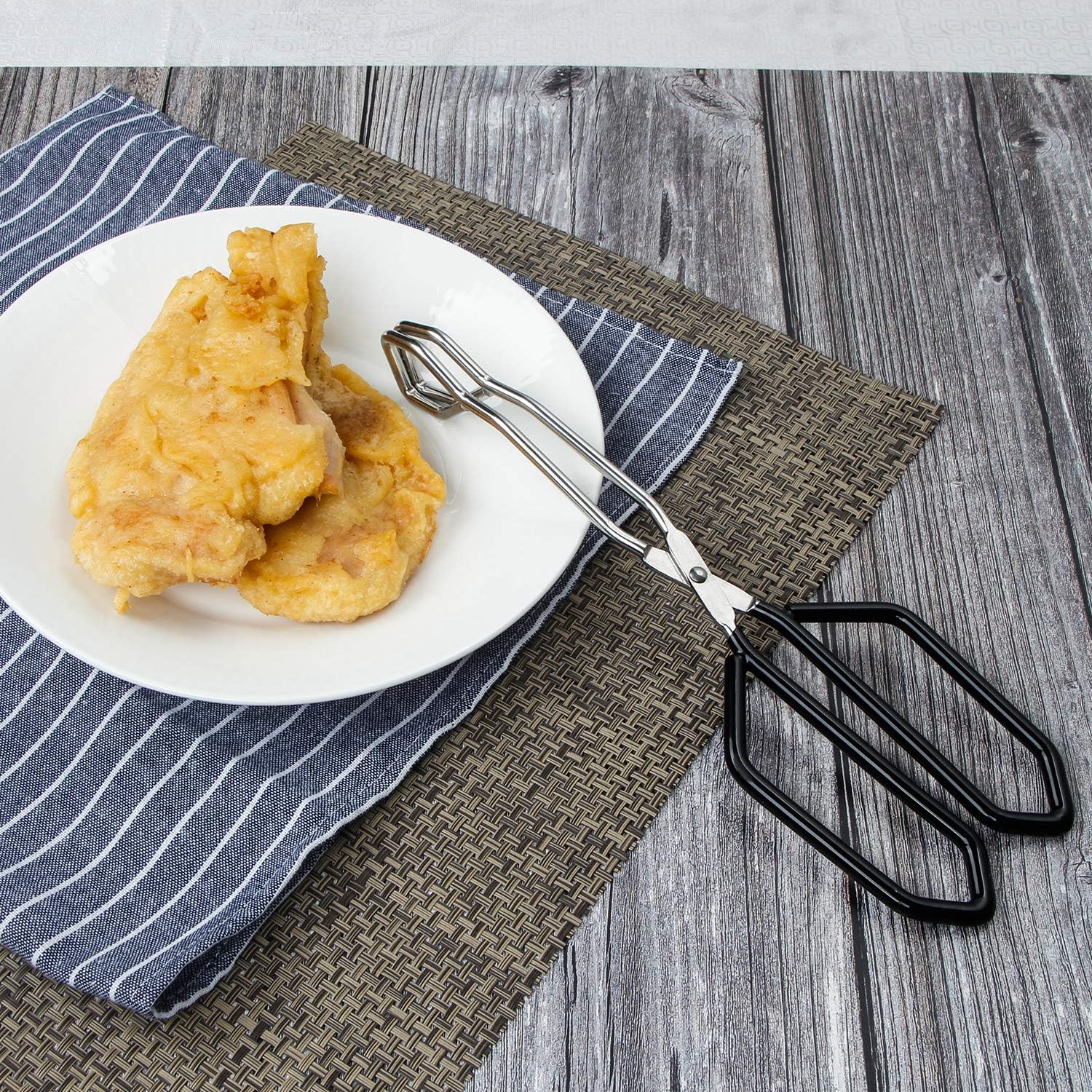 - Professional Quality: The scissors tongs are made of food-grade stainless steel, and the square designed head features non-slip embossing which is very suitable for flipping turning and lifting food
