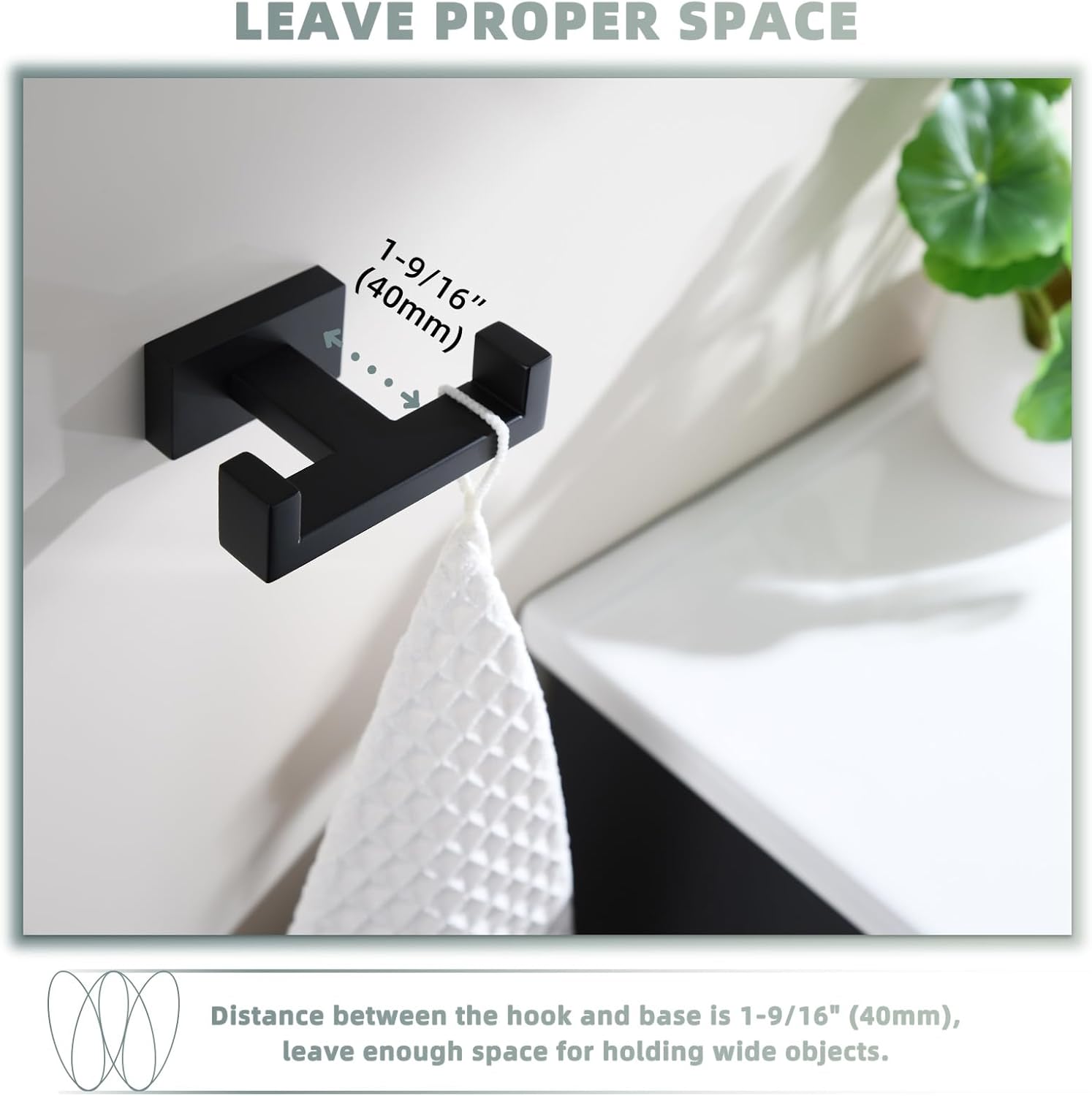 Suyar Matte Black Double Towel Hook, SUS 304 Stainless Steel Bathroom Coat Robe Hook, Hand Towel Holder for Wall