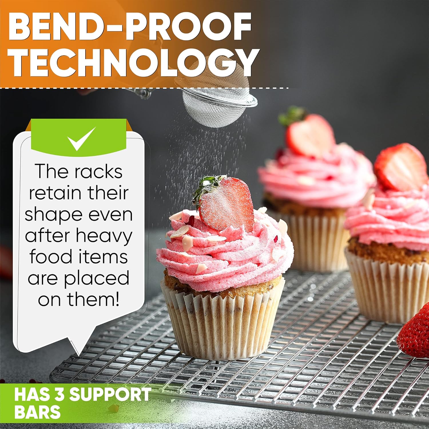 - 100% Solid 304 (18/8) Stainless Steel Construction - No metal platings or coatings that can chip or scratch and transfer toxins/chemicals to your food the way non-stick racks can. They also wonβt rust, warp or bend.