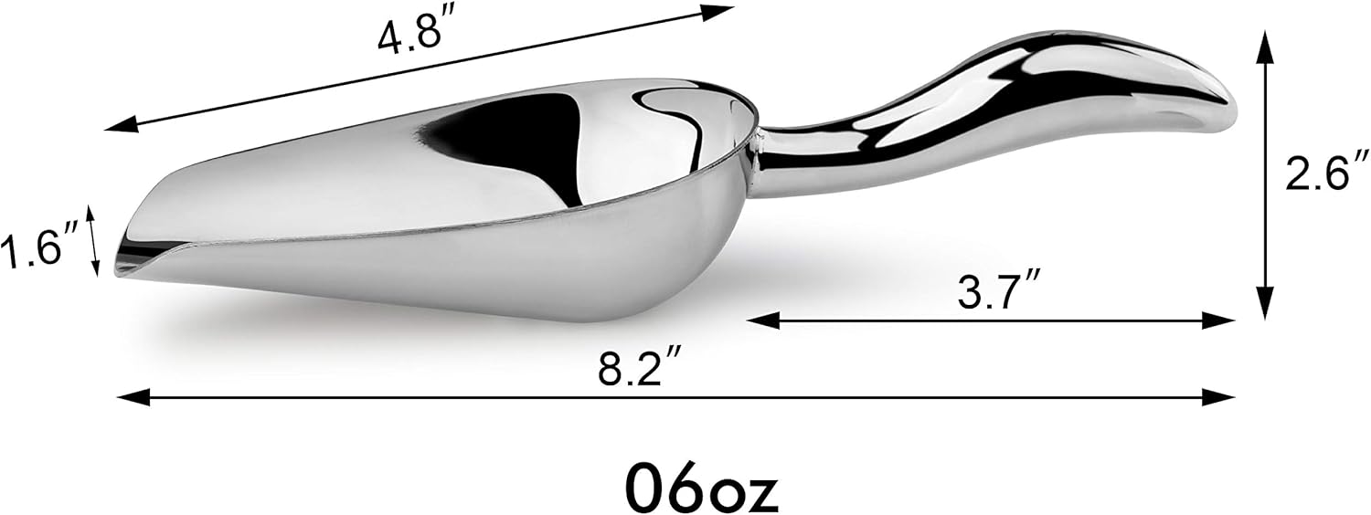 - Commercial-Grade Stainless Steel utility scoop great for ice, sugar, flour, popcorn, and candy.