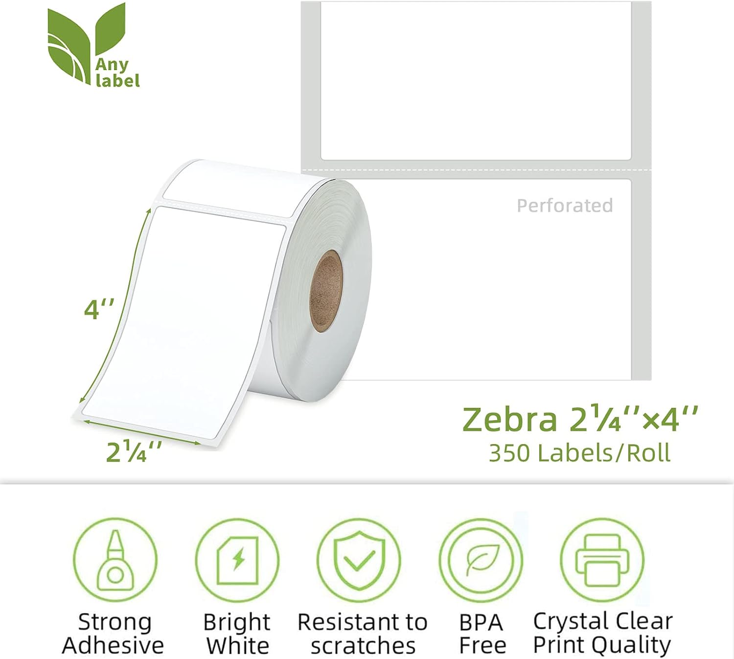 - 🧻QUALITY: Anylabel 2-1/4" x 4" Compatible Labels are White. Print darker & sharper barcode labels that permanently adhere to virtually any surface. BPA-free, Easy to peel off, fast & clear printing.