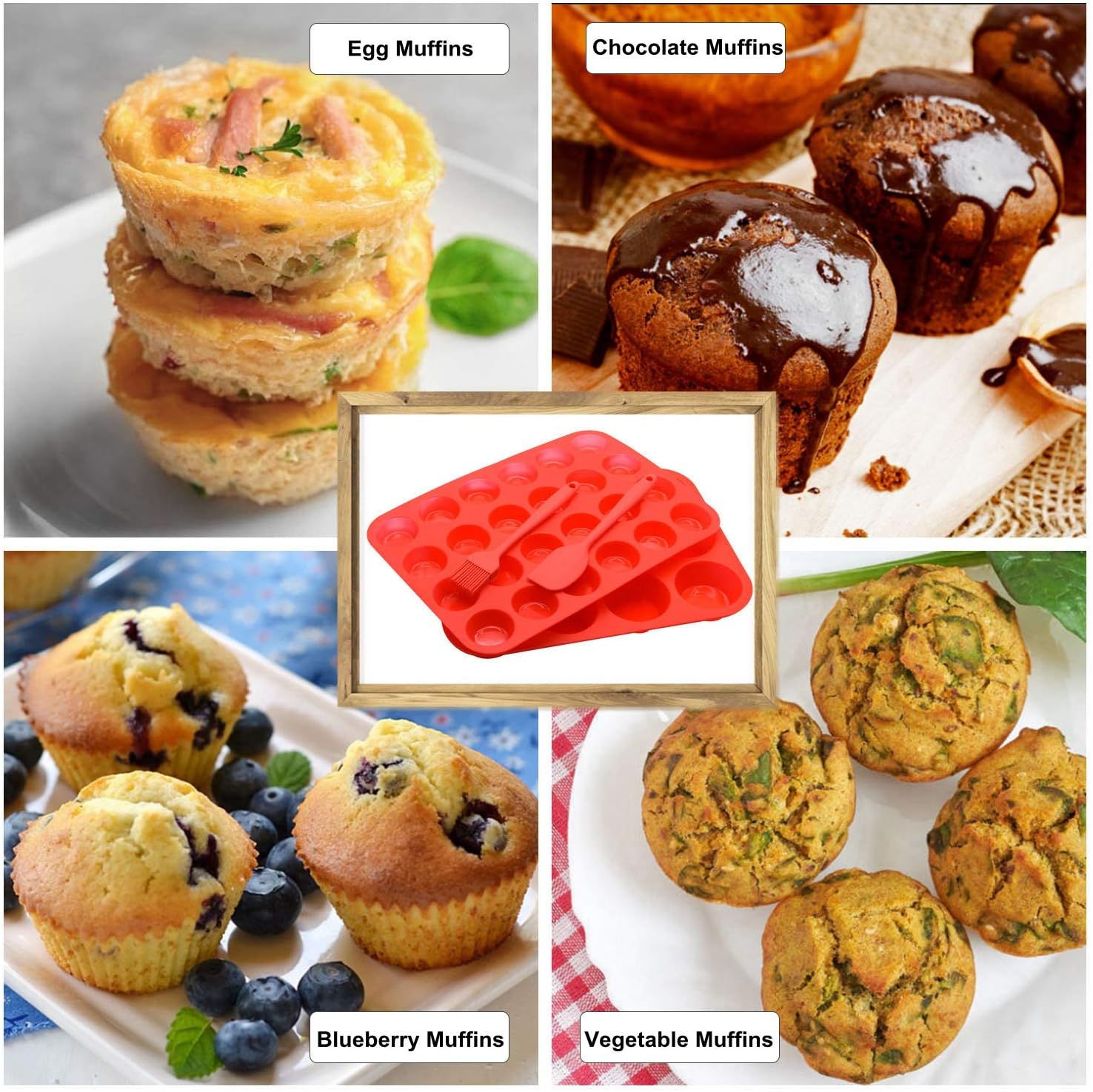 - PREMIUM SET OF MUFFIN PAN:The muffin pan set included: Mini 24 Cups and regular 12 Cups Baking Muffin Tin and 1 Extra Free Silicone Spatula & 1 Oil Brush.With these silicone baking pans, you could create up to 12 regular muffins, and 24 mini muffins at a time, truly giving you more for less!These silicone muffin molds are a must-have for any baking enthusiast!