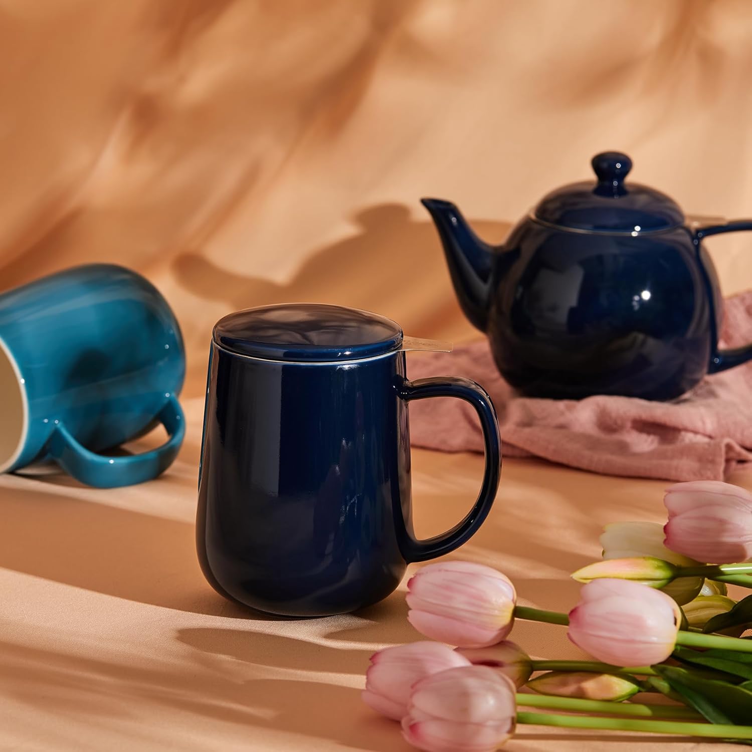 - Ex-Large Tea Infuser: 20 oz Large tea mug with an infuser and lid is your best choice, no matter go outdoors in your living room & backyard. The 20 oz capacity is enough for a day's drinking, and you'll never have to carry another tea maker. More convenient and simple.