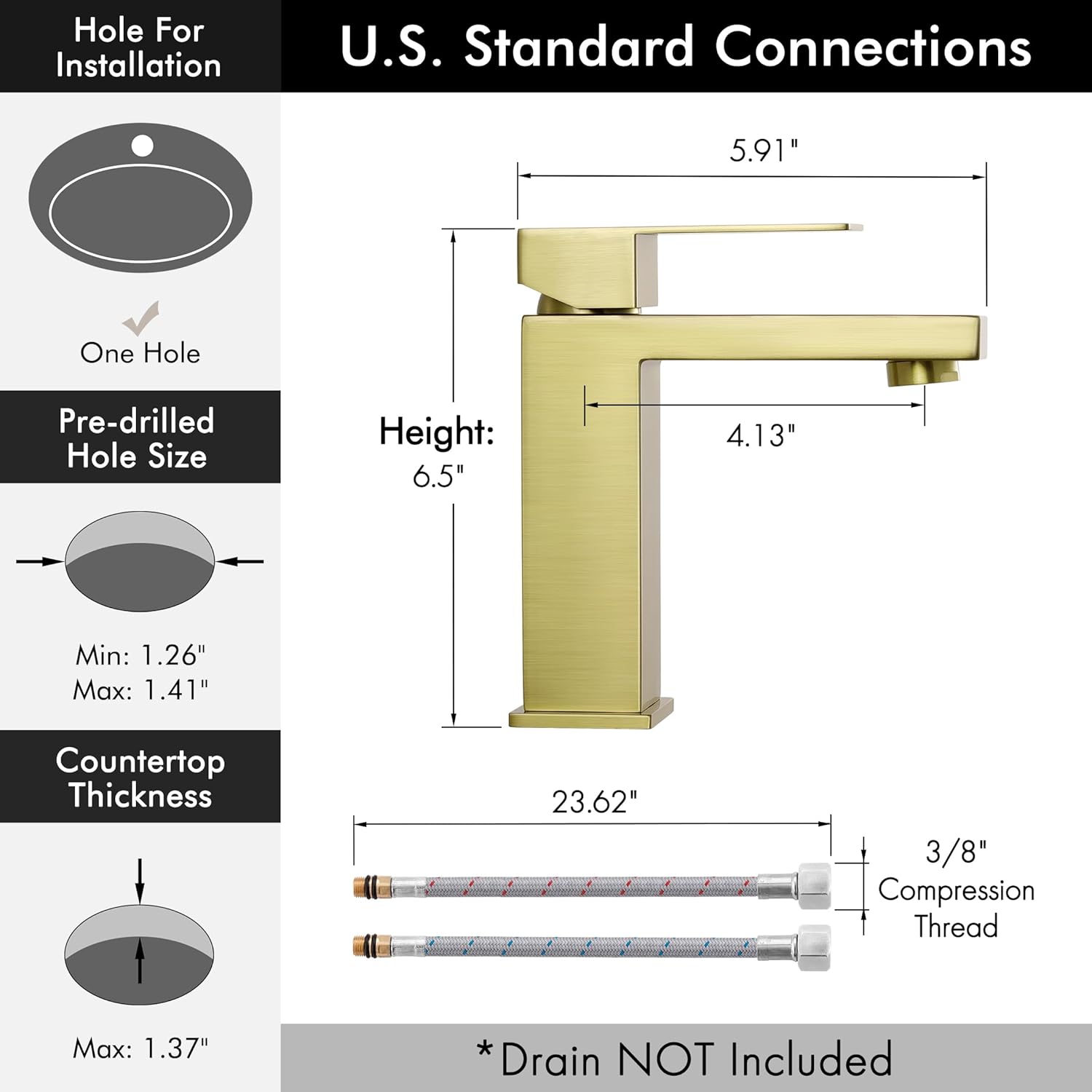 - Included Components : *Note:Contact us -If Need a Longer Customized Hose, 23.6" Resist-kink Hose (Covered Global Insurance), Bathroom Faucet (with NSF Lead-free Certified), Installation Hardware, Instruction Manual *Note:Contact us -If Need a Longer Customized Hose, 23.6" Resist-kink Hose (Covered Global Insurance), Bathroom Faucet (with NSF Lead-free Certified), Installation Hardware, Instruction Manual