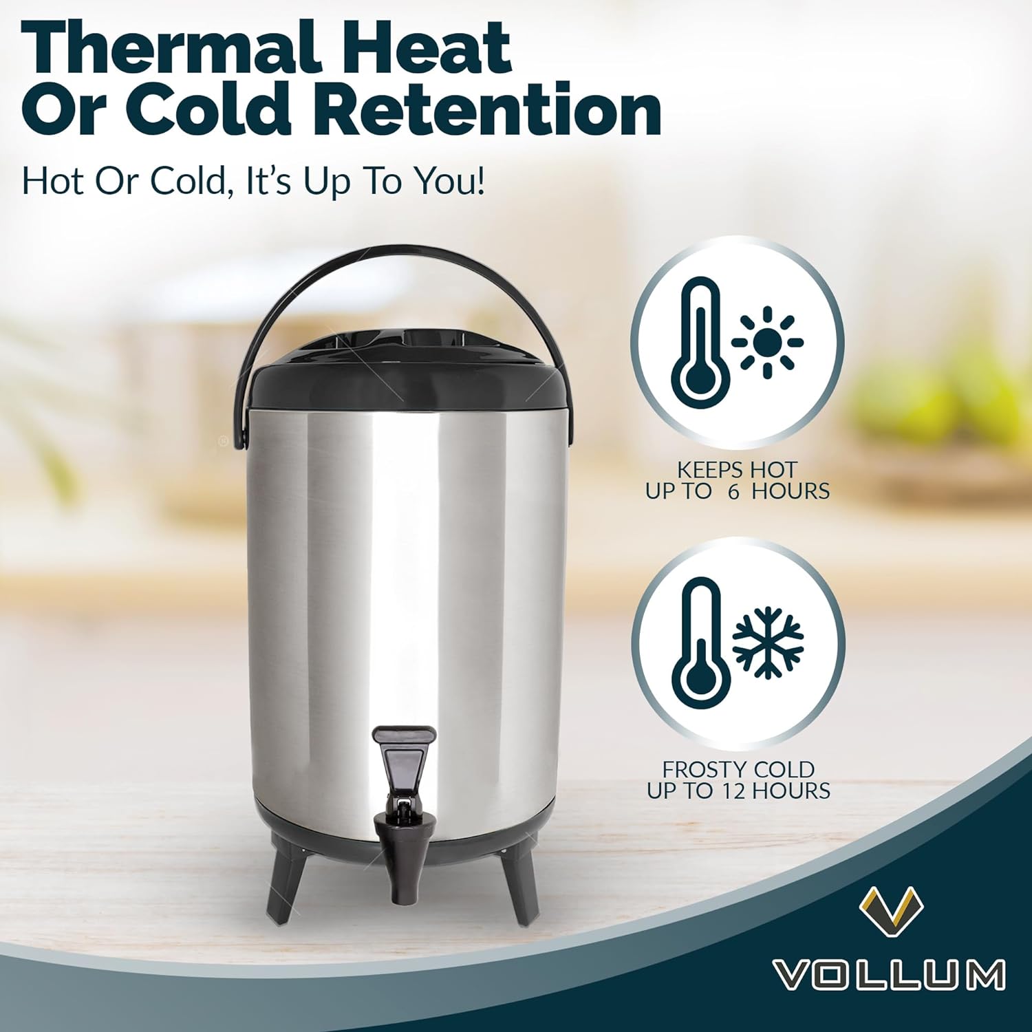 Stainless Steel Insulated Beverage Dispenser – Insulated Thermal Hot and Cold Coffee Carafe – 10 Liter Drink Dispenser with Spigot for Hot Water, Tea & Coffee, Cold Milk, Juice & More BLACK