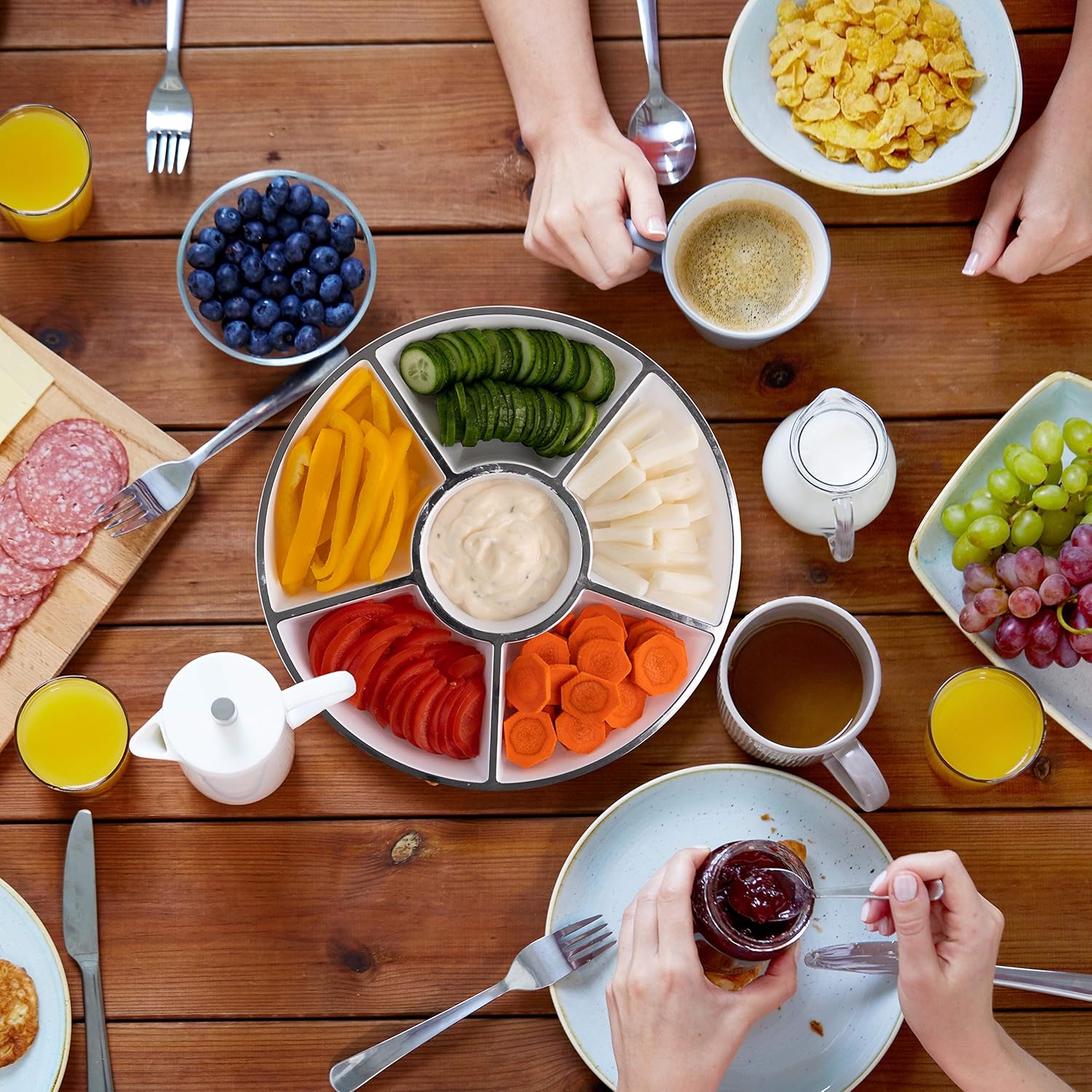 - USE: Plasticpro 6 Sectional Part Platter is Great for Use for Cut up Veggies, Nut Platter, Candy Platter, Veggy's & Sauce in the Center Weddings, Family gatherings, Holidays, Birthday Party's & for Every Event
