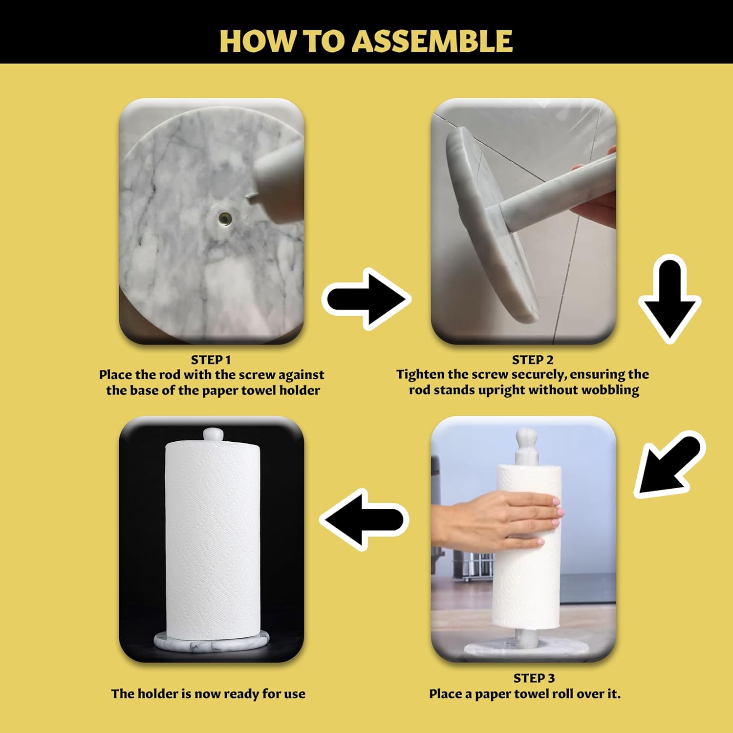 - HEAVY-WEIGHT- The natural heavy marble stone ensures that the kitchen towel holder stays steady and does not fall over while you’re taking a towel from the roll. This increases the stability of the holder and keeps it steady during use.