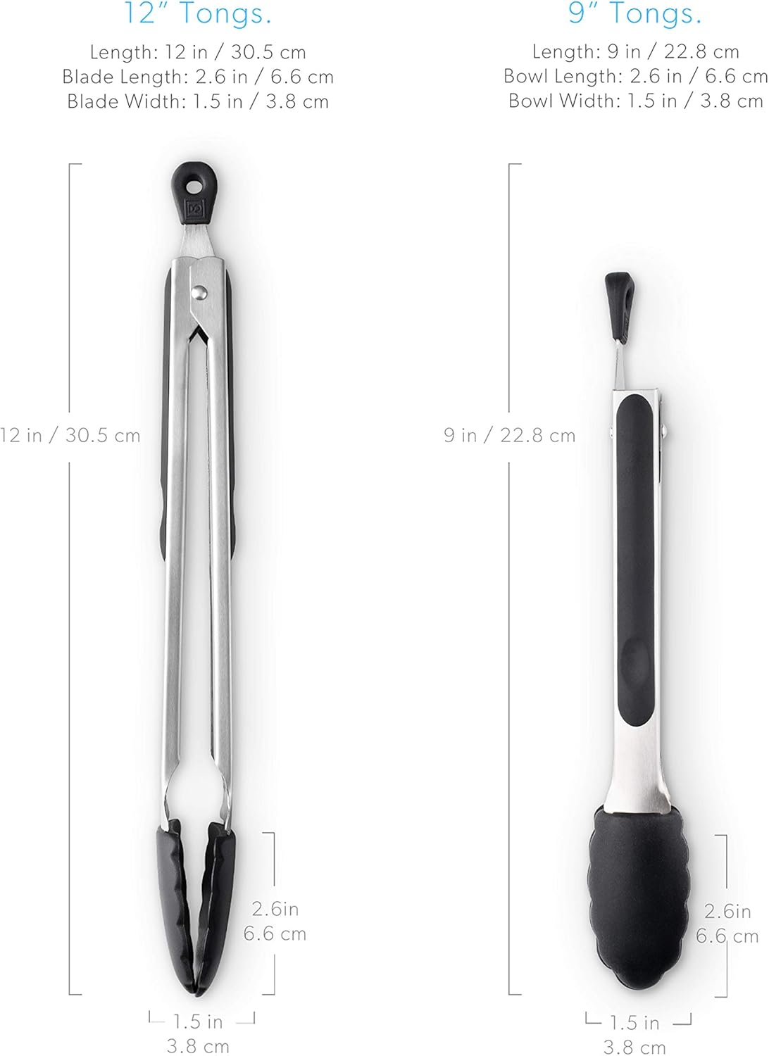 - HEAVY-DUTY STAINLESS-STEEL KITCHEN TONGS - While cheap and inferior tongs consistently fail, the DI ORO 2-Piece Silicone Kitchen Tong Set is engineered with heavy-duty stainless steel and silicone tips to prevent scratches and damage to your cookware. Each set will stand the test of time as they have been rigorously kitchen tested and expertly sized (9โ and 12โ) to ensure a multitude of applications can be used on a daily basis in home and commercial kitchens.