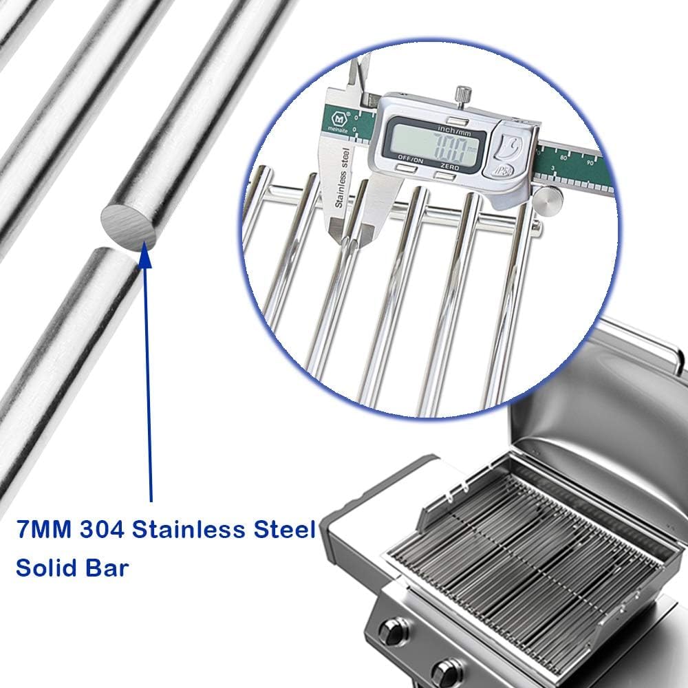 - 【DURABLE 7MM SOLID ROD CONSTRUCTION】Uniflasy's stainless steel grill grate features a robust 7mm solid rod design, more thicker than other 5MM Grates, 18 parallel bars, unlike others which only had 15, This high density and thickness endow the cooking grate with a strong resistance to deformation, Whether you're replacing old Weber grill grates or upgrading your outdoor kitchen, this grate delivers unmatched durability.