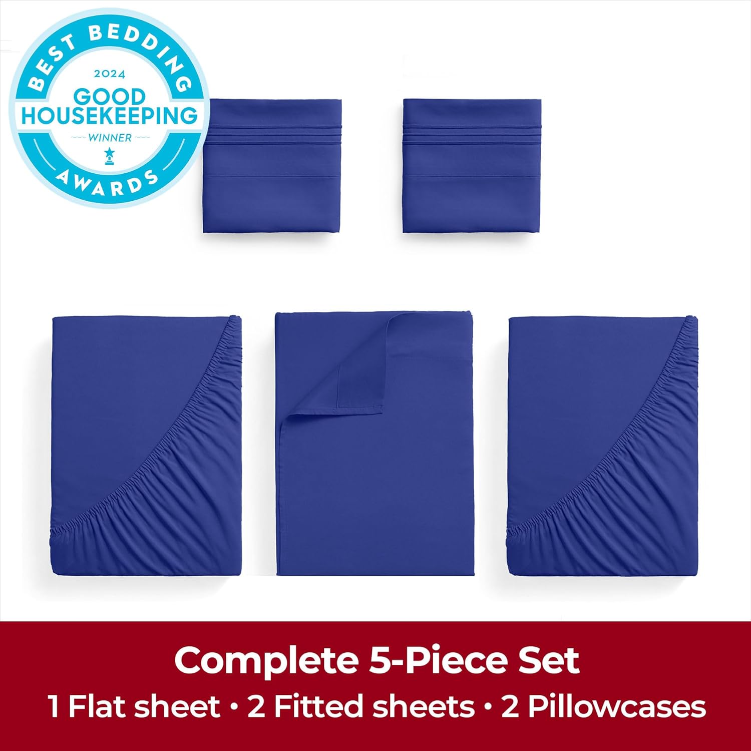 Mellanni Extra Deep Split King Sheets - 5 PC Iconic Collection Bedding - Hotel Luxury, Ultra Soft, Cooling Bed Sheets - Wrinkle, Fade, Stain Resistant (Split King, Royal Blue)