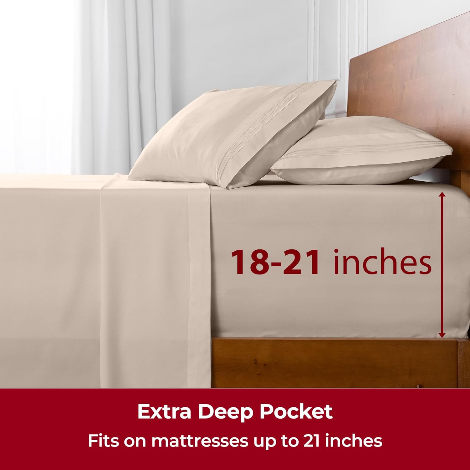 Mellanni Extra Deep California King Sheets - 4 PC Iconic Collection Bedding - Hotel Luxury, Ultra Soft, Cooling Bed Sheets - Wrinkle, Fade, Stain Resistant (Cal King, Beige)