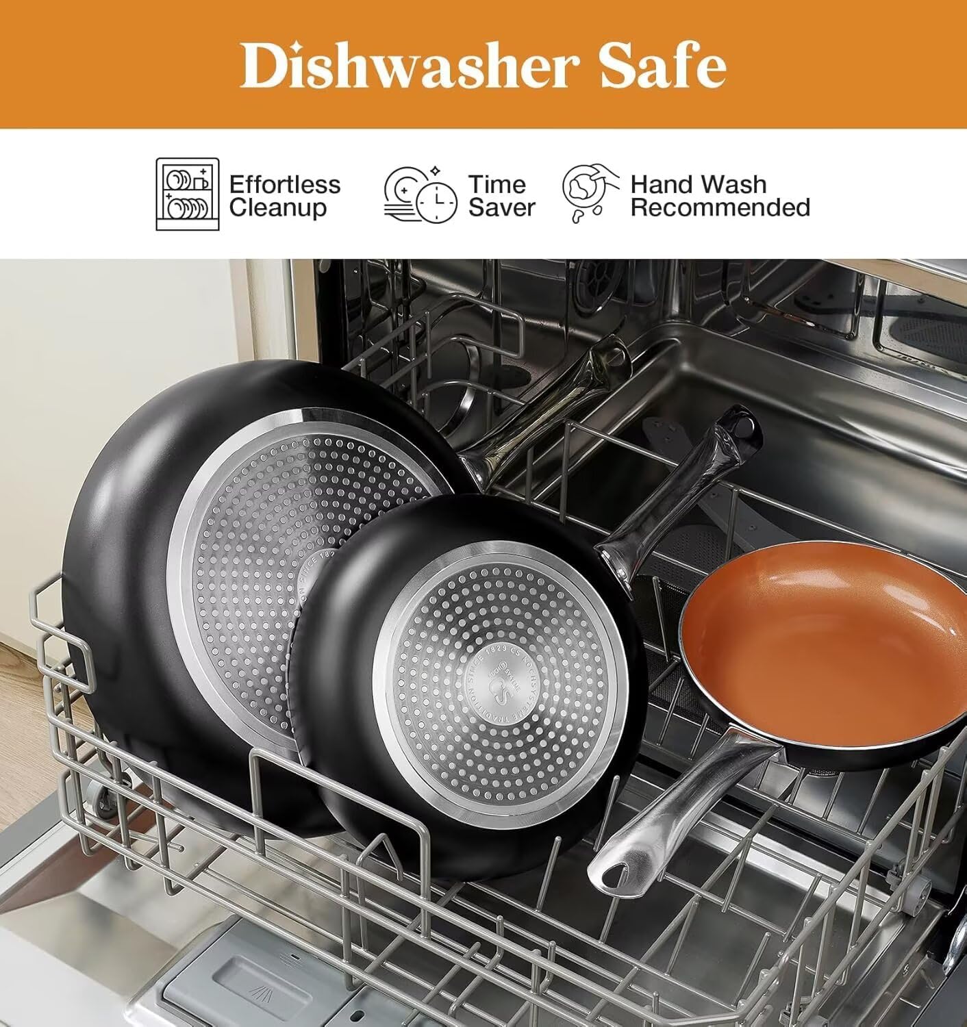 - [Heat Evenly, Durable Use] Each layer of this nonstick frying pan does its own job. The aluminum alloy body ensures the durability, the joint reinforcement layers ensure heated evenly. Also, the non-stick coating makes this copper pan easier to clean, people are suggested to cook with less oil when cooking with this skillet. It is noticed that the stainless ball may destroy the coating.