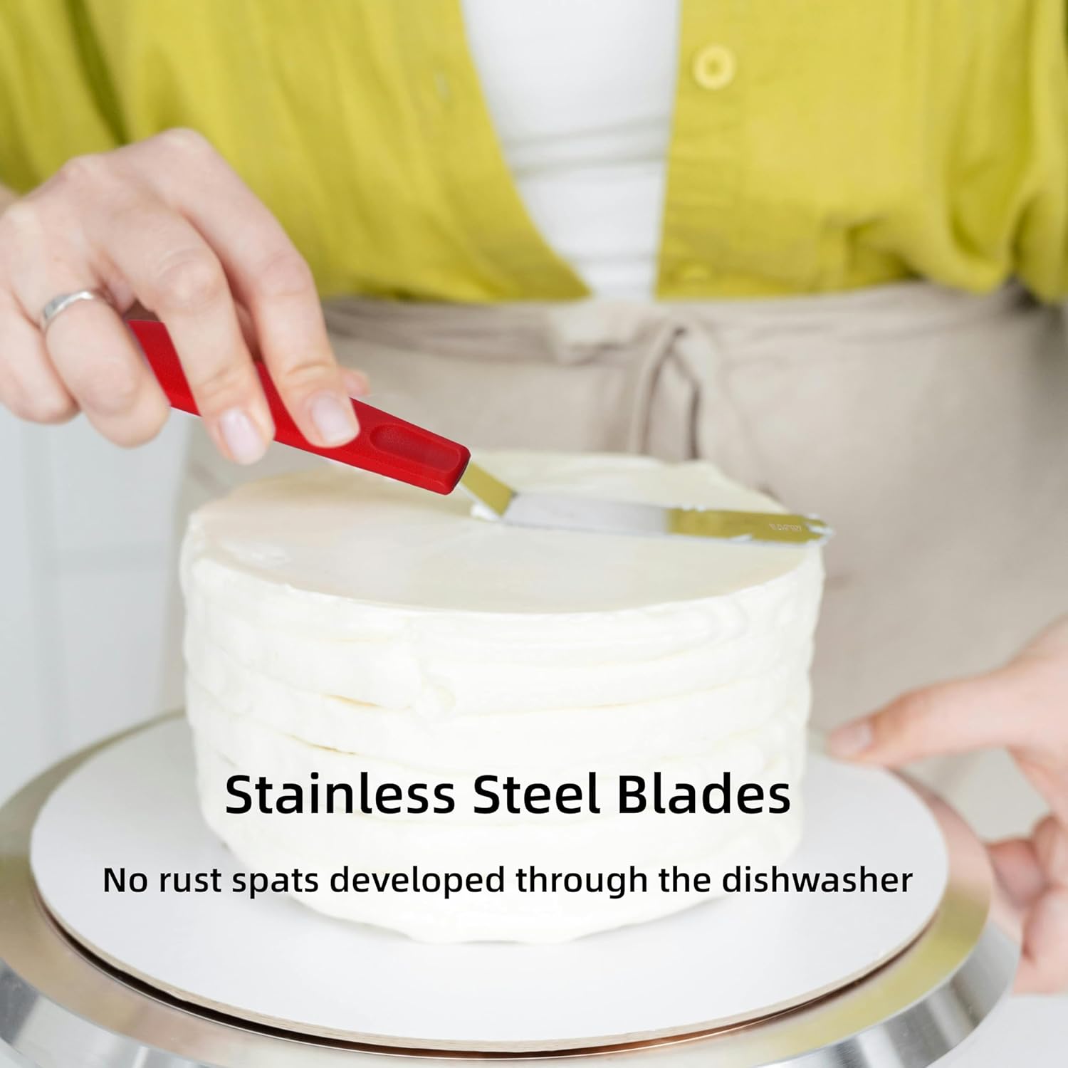 Cake Offset Spatula set of 4 6 8 inch Angled Icing Spatula Cake Decorating Frosting Knife, Red