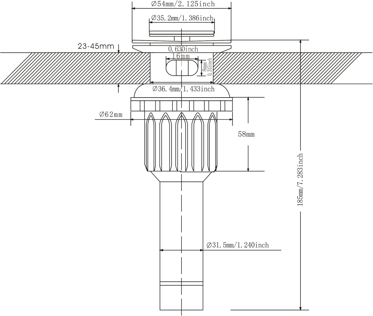 - STANDARD SIZE FITS MOST SINKS. Suitable for sink hole diameter 1.43" to 2.12". MAX. sink thickness 1.77". Tailpiece diameter: 1.24". NOTE: This sink drain ONLY compatible with sinks with overflow.