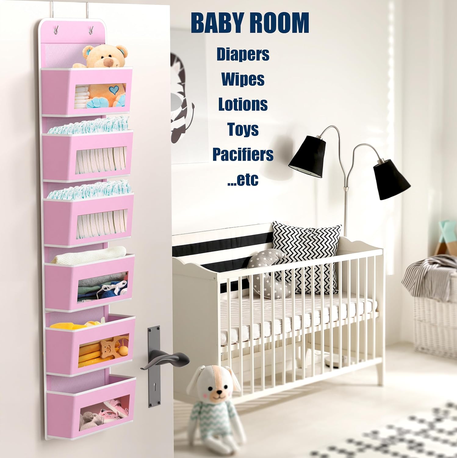 Simple Houseware 6 Clear Window Pocket Over Closet Door Storage Hanging Organizer for Bedroom, Bathroom, Pantry, Pink