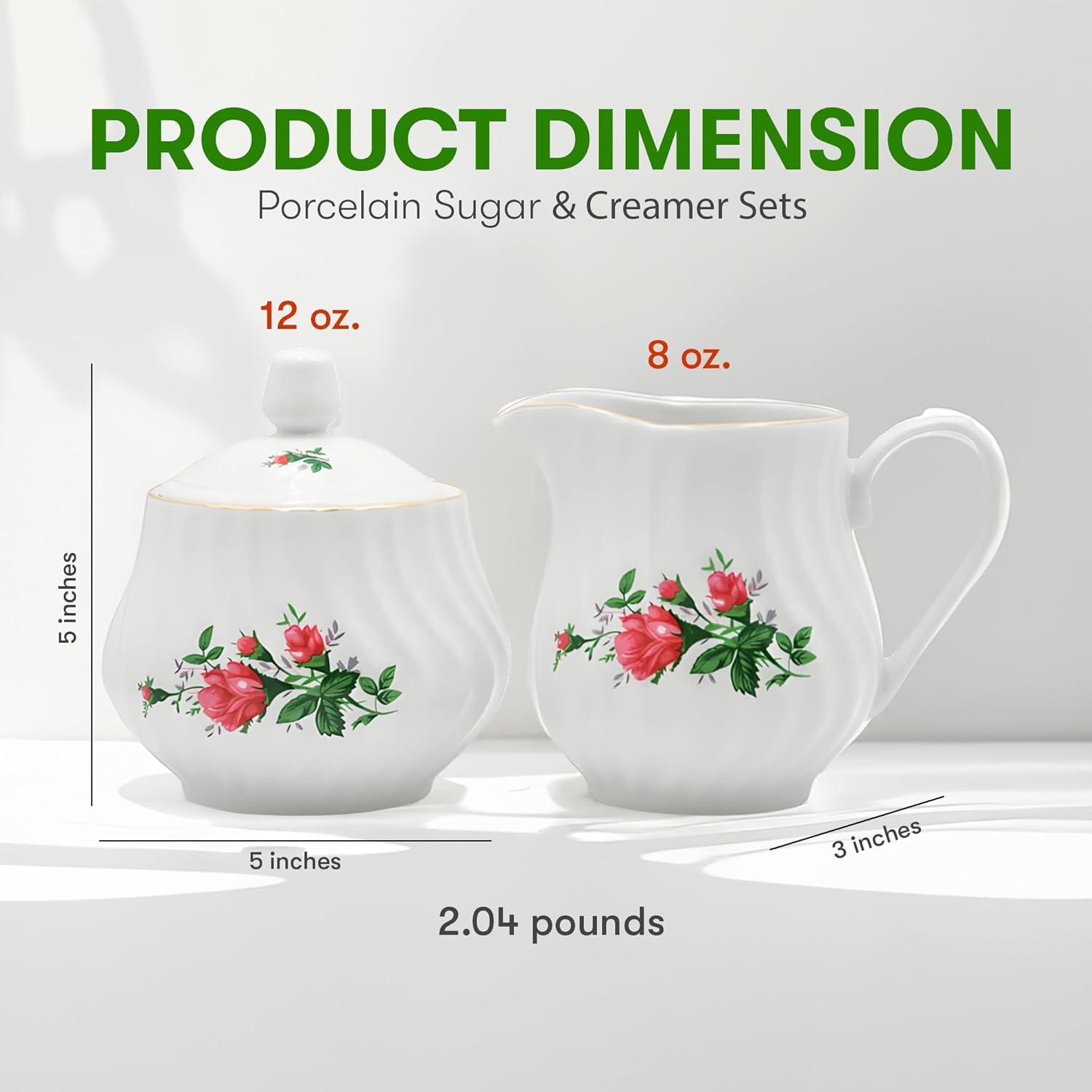 Sugar and Creamer Set - Porcelain Sugar and Creamer Floral Vintage Tea Set with Gold Trims & Embossed Swirls - Exquisite Fine China Tea Set for Parties & Celebrations - Vintage Rose Set by Lynns