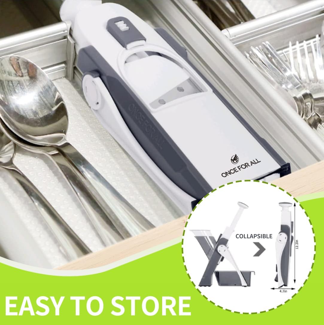 ONCE FOR ALL Safe Mandoline Slicer 5 in 1 Vegetable Chopper Food Potato Cutter, Strips Julienne Dicer Adjustable Thickness 0.1-8 mm Kitchen Chopping Artifact Fast Meal Prep (Gray)