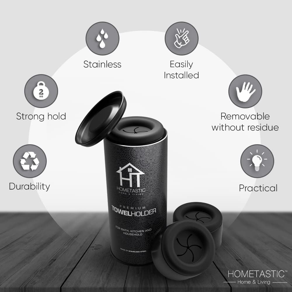 - INNOVATIVE TOWEL HOLDERS: A unique way to keep your towels in place. No matter whether in the kitchen, bathroom or living area, these towel clips made of stainless steel find a place everywhere and can be attached easily to all surfaces