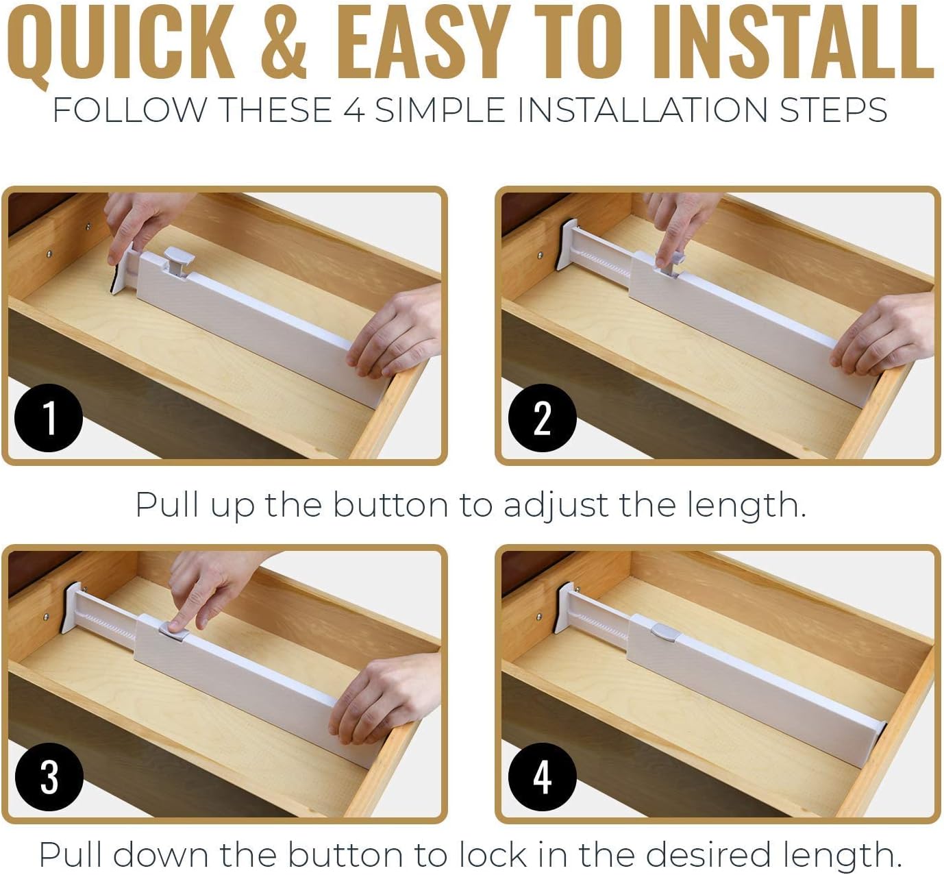 - Expandable 13-22 Inch Deep Drawer Divider: Custom-fit your dresser, kitchen, or office drawers with these adjustable, slide-and-lock dividers—no tools needed.