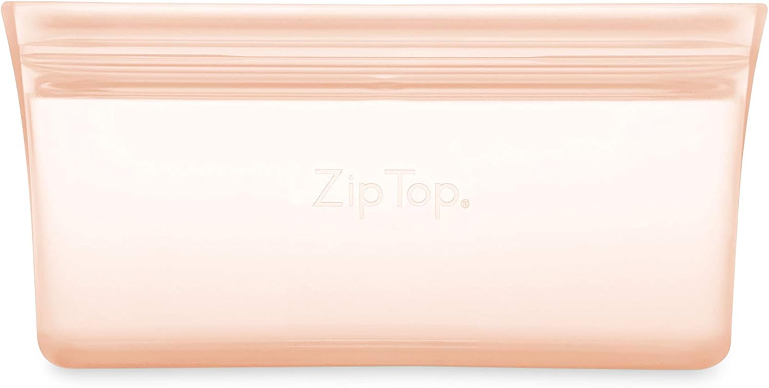 Zip Top Reusable Food Storage Bags | Snack Bag [Peach] | Silicone Meal Prep Container | Microwave, Dishwasher and Freezer Safe | Made in the USA