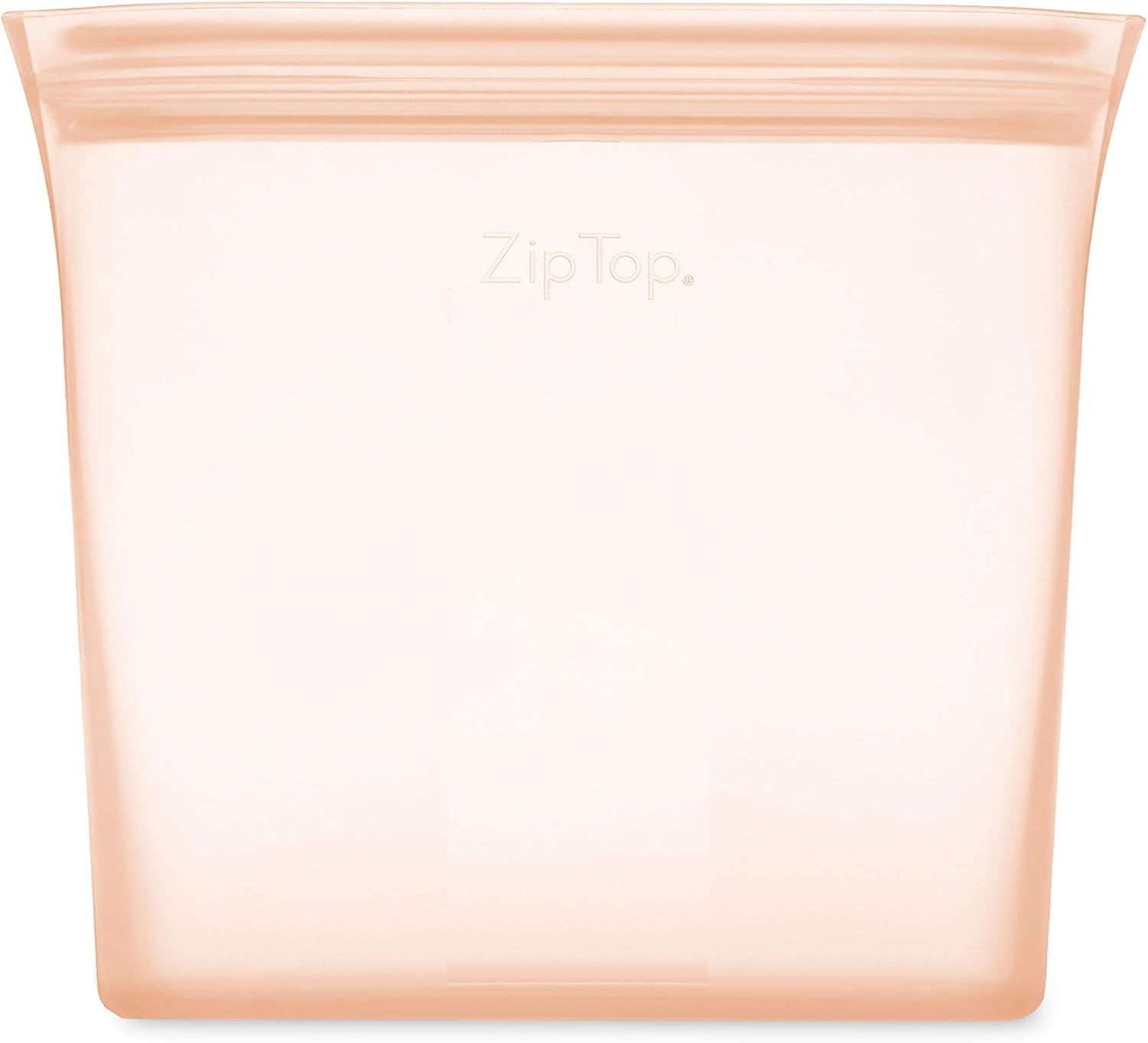 Zip Top Reusable Food Storage Bags | Sandwich Bag [Peach] | Silicone Meal Prep Container | Microwave, Dishwasher and Freezer Safe | Made in the USA