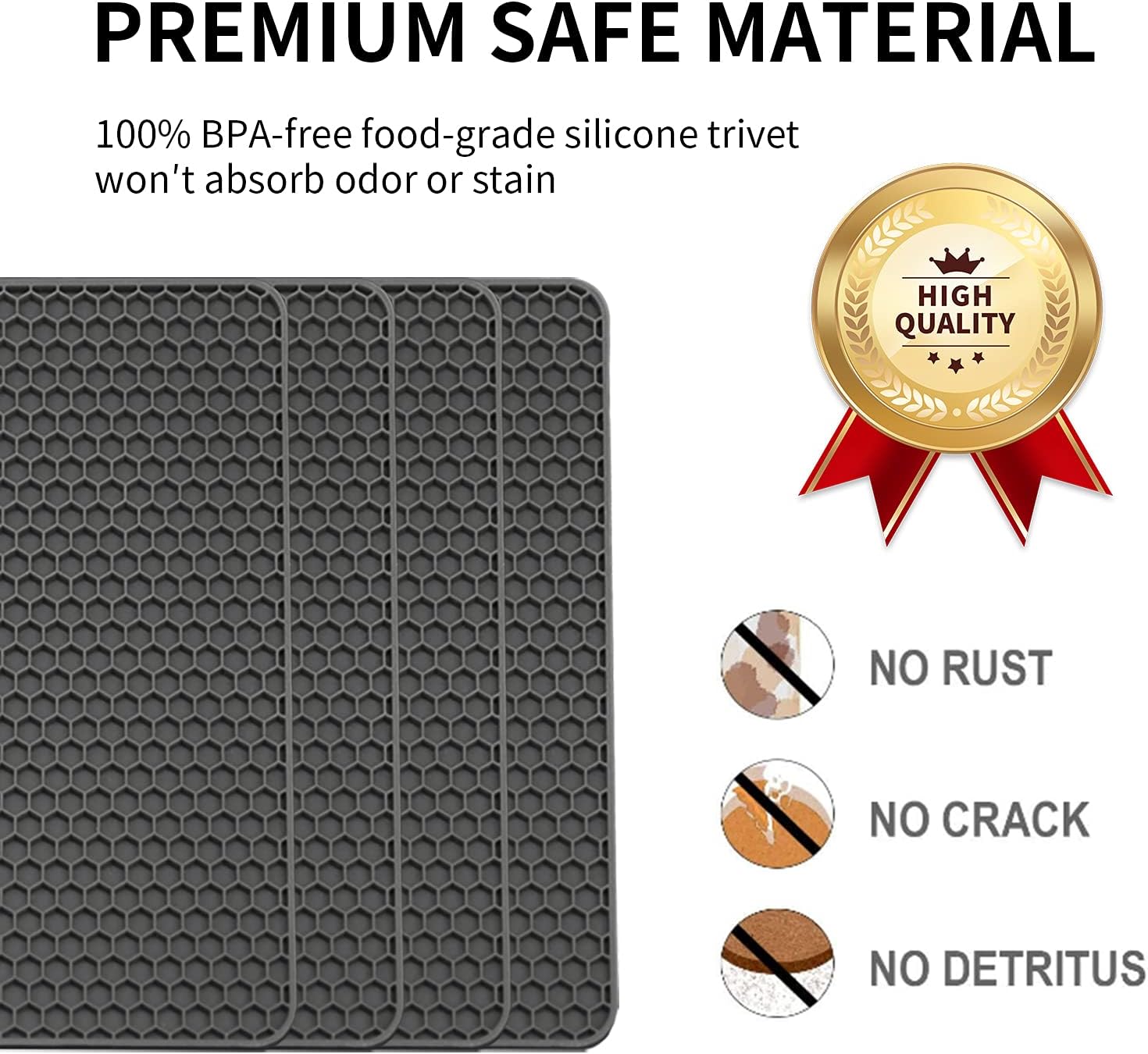 - 💝【PREMIUM SAFE MATERIAL】- The silicone trivet made from 100% BPA-free food-grade silicone, exposure to food safety. silicone pot mat flexible, great to grab, the tensile property is good and the service life is long. Our Silicone pot holders has a much better anti-slip performance than regular cork and bamboo pots.