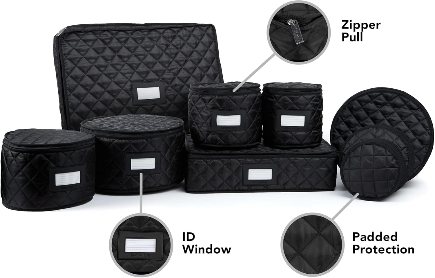 Covermates Keepsakes - Dish Storage Set - Padded Protection - ID Window - Stain Resistant - Machine Washable - China Storage, Black