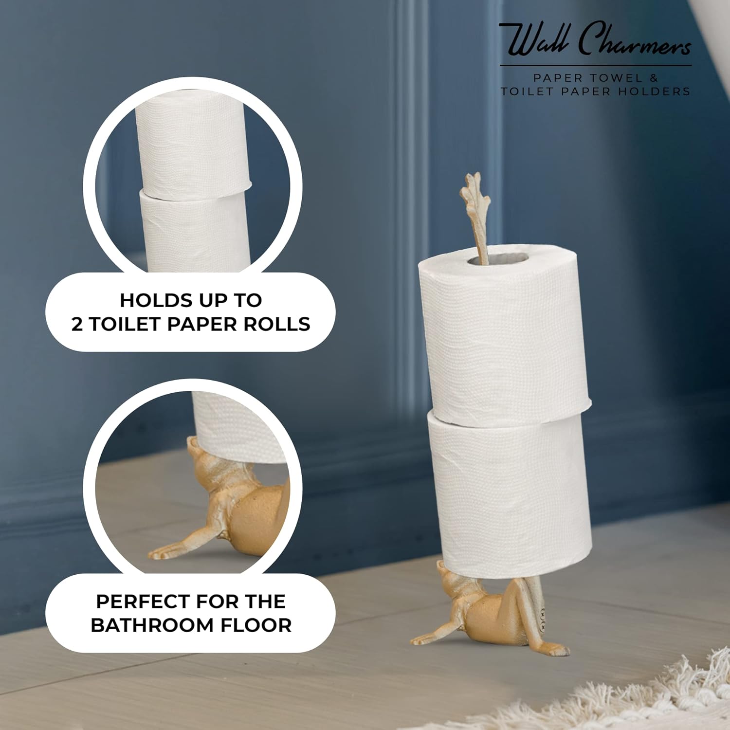 WallCharmers Gold Paper Towel Holder, Metal Toilet or Kitchen Paper Holder for Floor or Countertop, Gold Frog