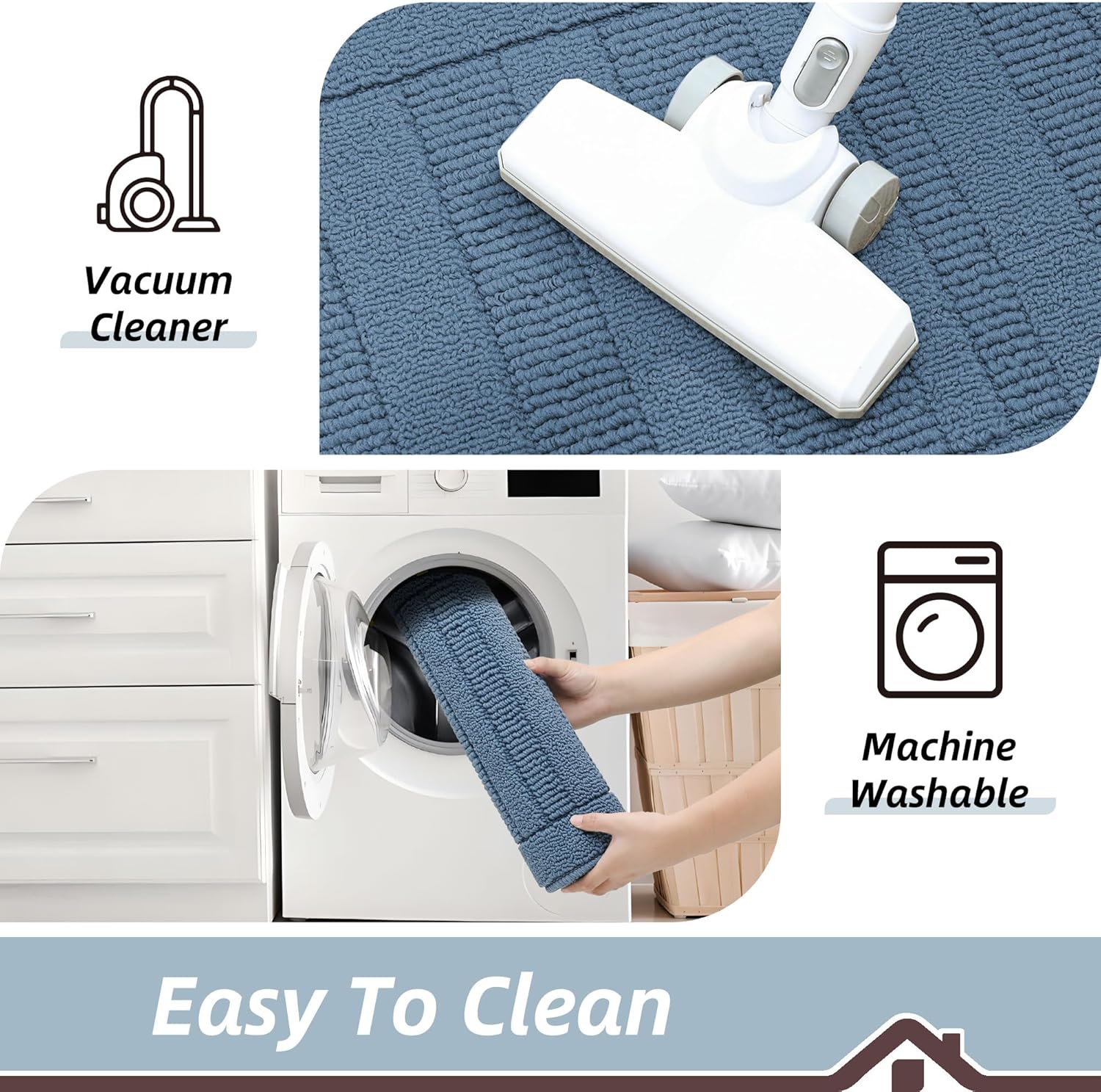 - Easy to Clean: Our kitchen rugs and mats non skid washable are easily cleaned.You can use the vacuum.Also,they are machine washable.Don't worry about fiber falling because of edge locking technology.Our kitchen floor mats can be durable and reusable for long time.Kitchen mat still maintains shape and colors.