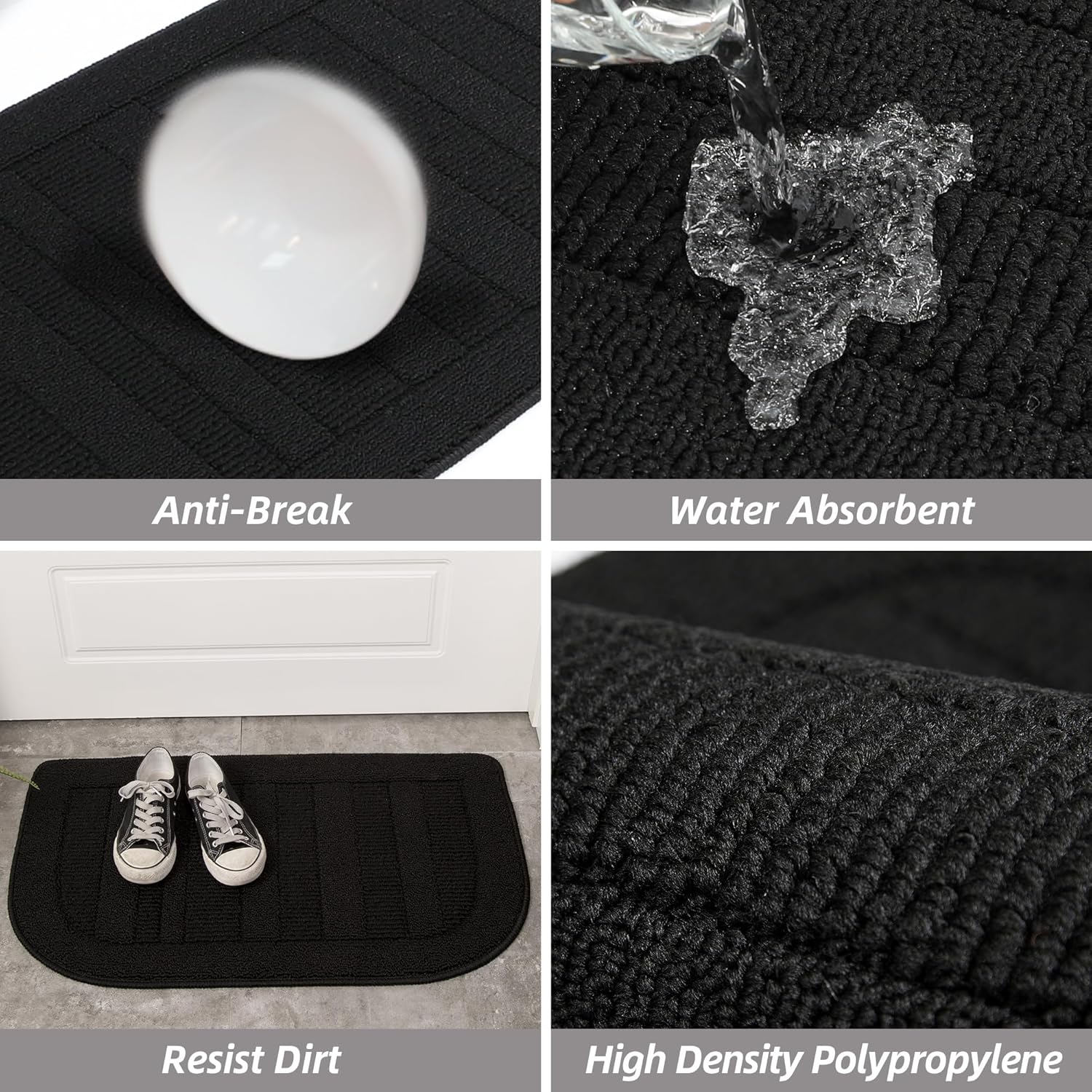BEQHAUSE 30x18 Inch Kitchen Rug Mat Durable Kitchen Rugs Non-Slip Washable Absorbent Kitchen Mats for Floor Dirt-Resistant Semicircular Kitchen Mat (Black)