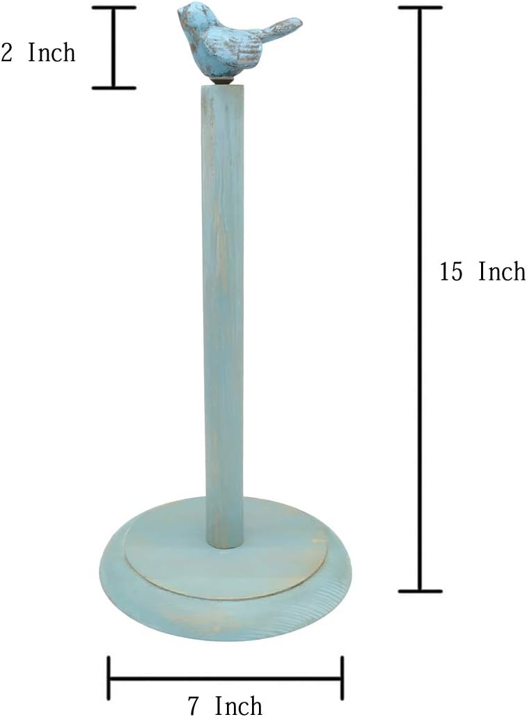 Bird Design Wood Paper Towel Holder Stand Up Paper Towel Holder, Easy One-Handed Tear Kitchen Paper Towel Dispenser with Weighted Base for Standard Paper Towel Rolls - Turquoise