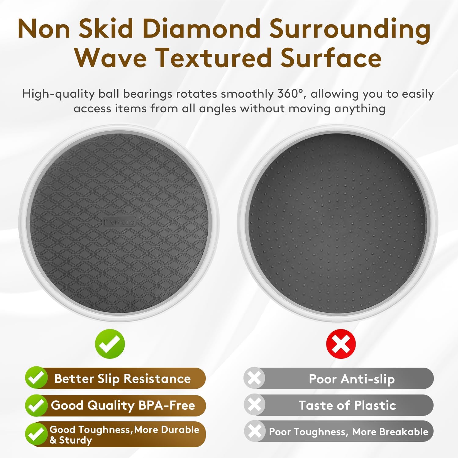- Durabl and Easy Clean: Our rotating trays turntables is made of BPA-free plastic and silicone, sturdy and durable and easy to clean, clean with warm soapy water and wipe.