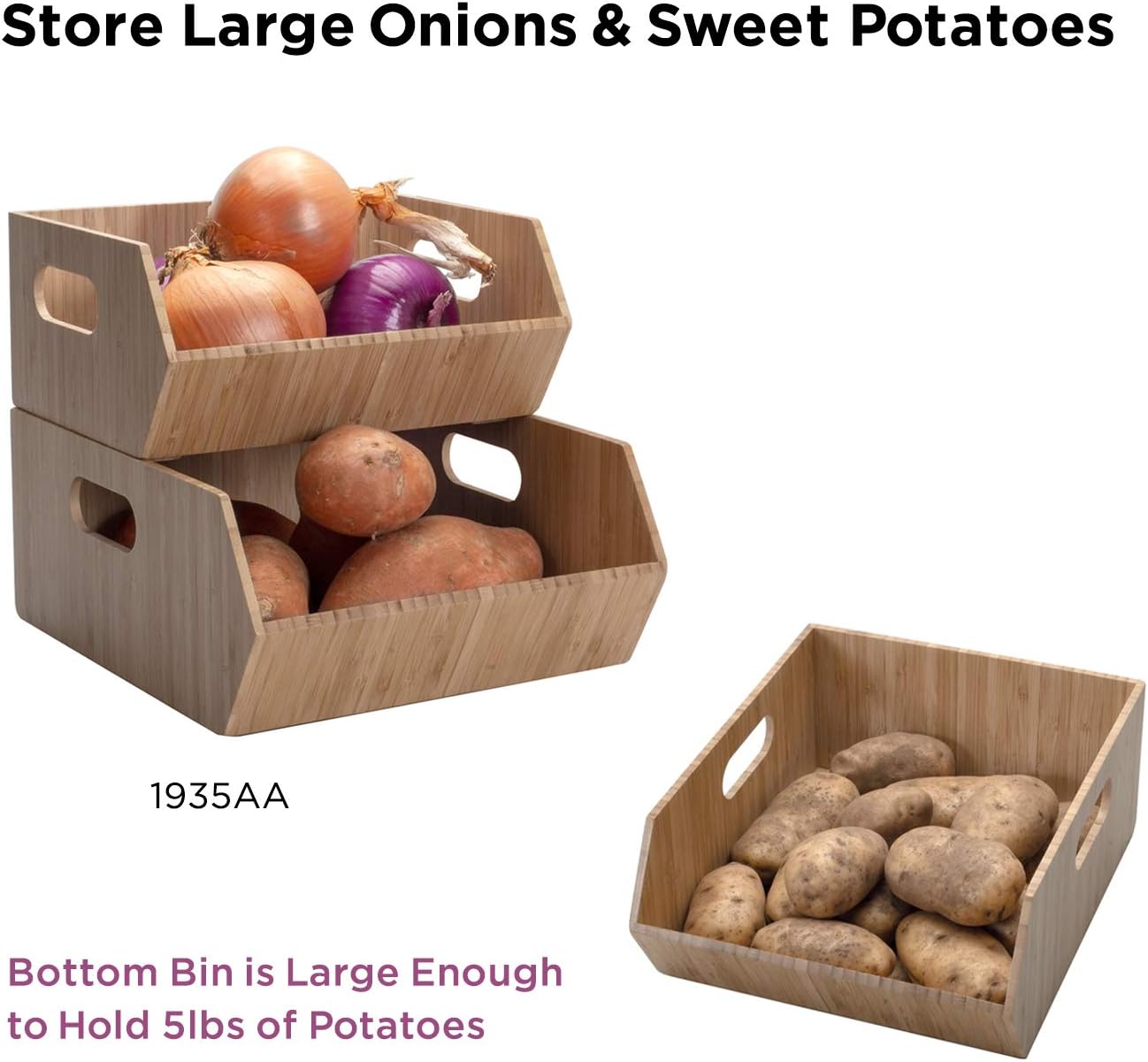 Mobilevision XL Versatile Bamboo Storage Bins for Pantry & Kitchen Cabinet Organizer Multi-Purpose / 2 Piece Stackable Set Larger Bins