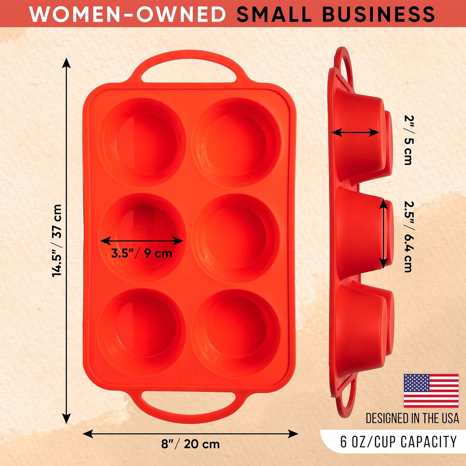 Silicone Jumbo Muffin Pan 6 Cup–Non-Stick Cupcake Pans for Baking, Heavy-Duty Large Silicone Muffin Pans for Baking, BPA-Free, Easy-Release, Oven & Dishwasher Safe